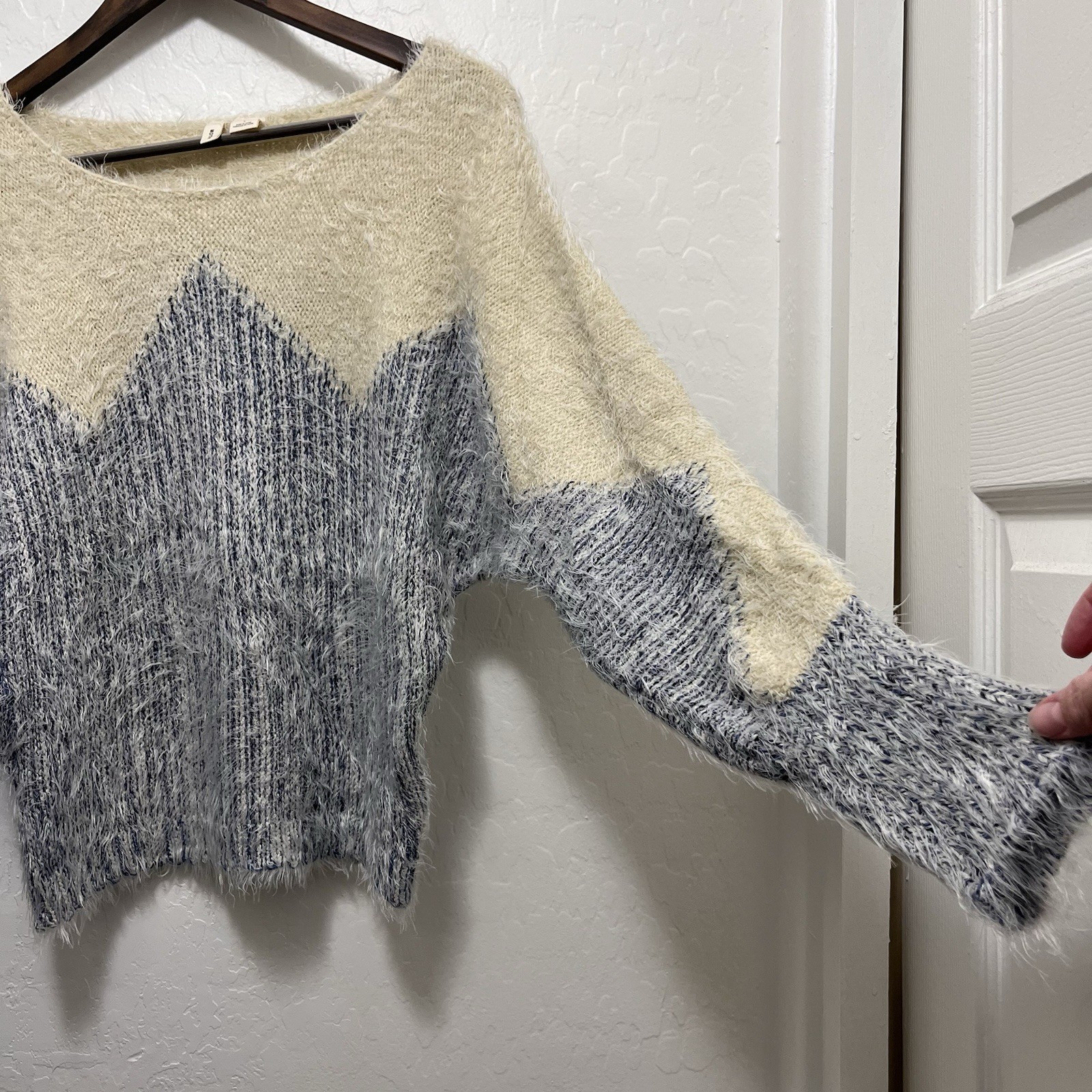 как выглядит Anthropologie Moth Fuzzy Sweater Size L Zigged Formation Cozy Knit фото