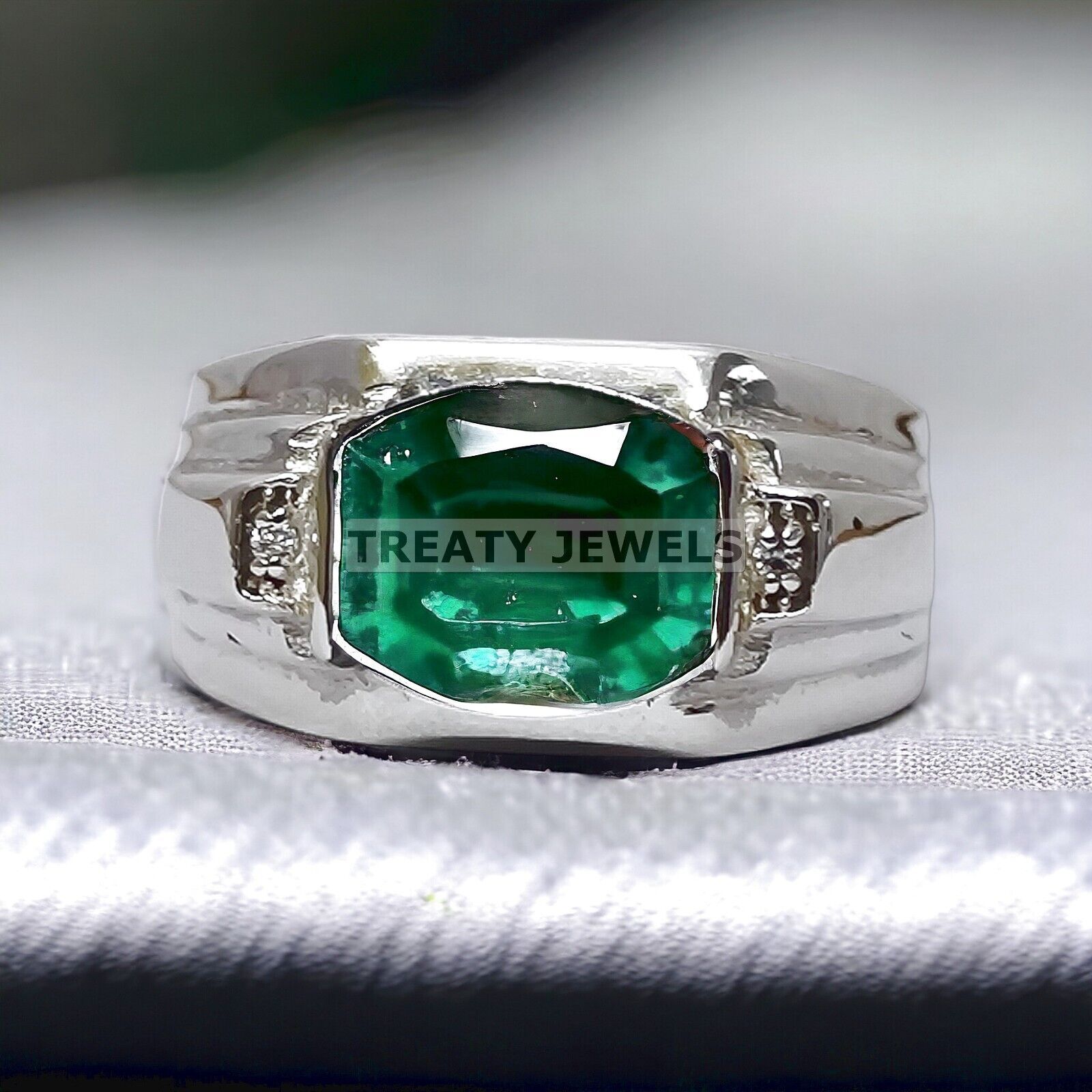 как выглядит Emerald Cushion Cut Gemstone With 925 Sterling Silver Ring For Men