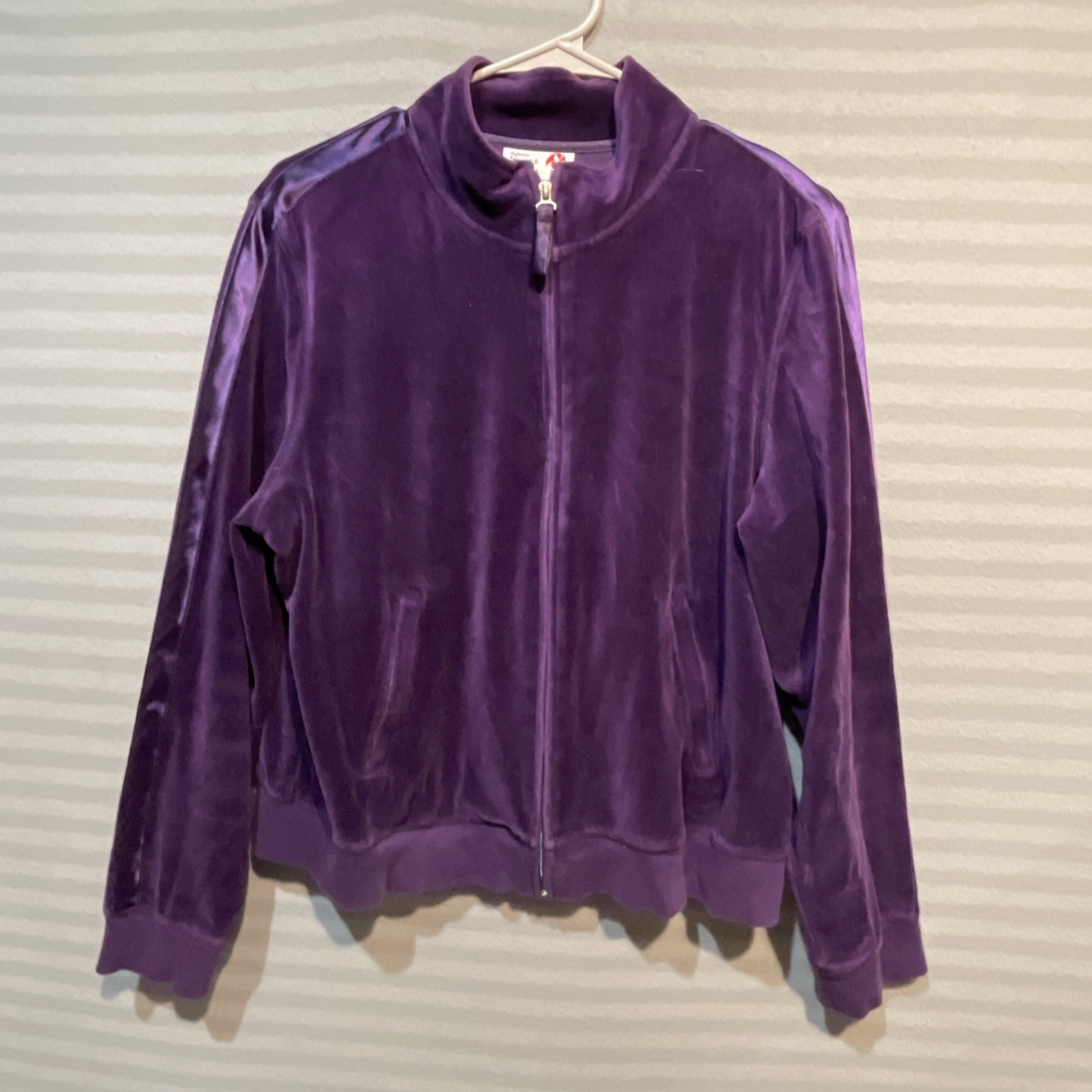 как выглядит Vtg 2pcs Purple Velour Velvet Track Suit Satin Trim Zip Y2K Womens Sz XL Mob 90s фото