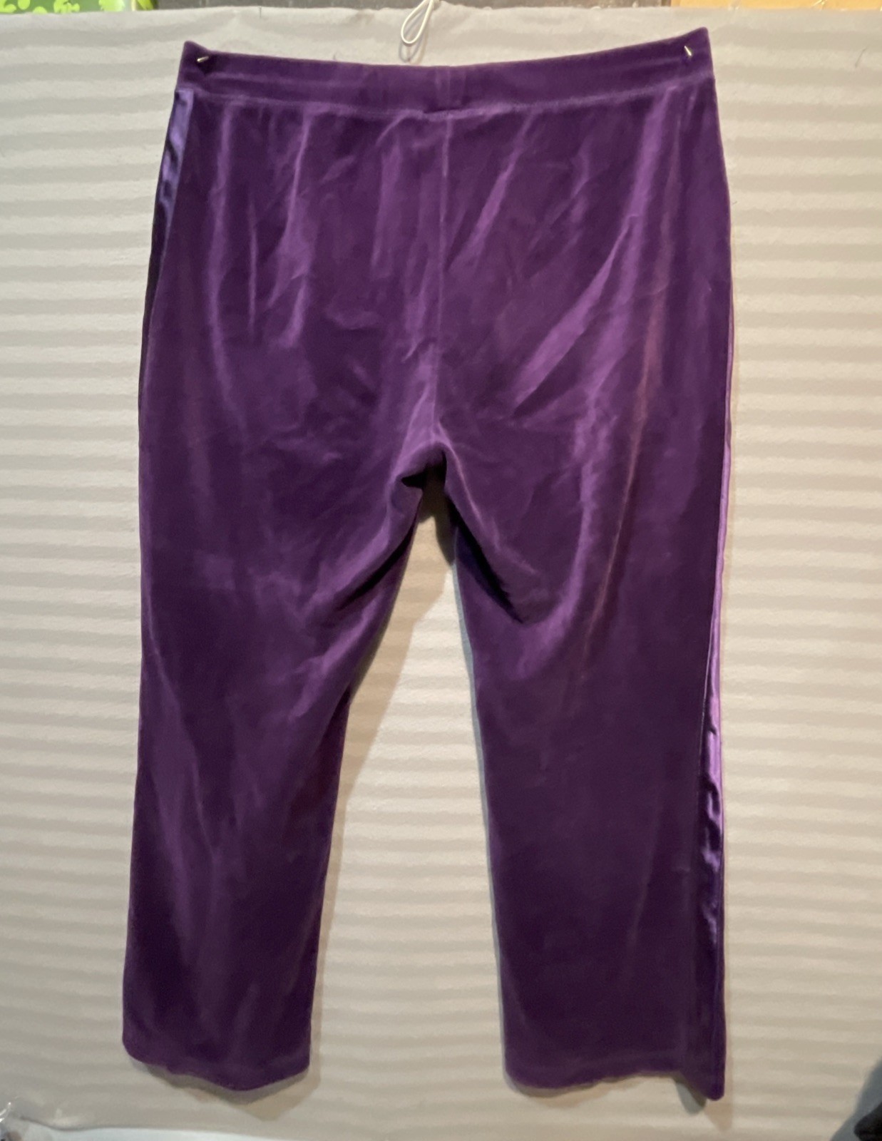 Vtg 2pcs Purple Velour Velvet Track Suit Satin Trim Zip Y2K Womens Sz XL Mob 90s