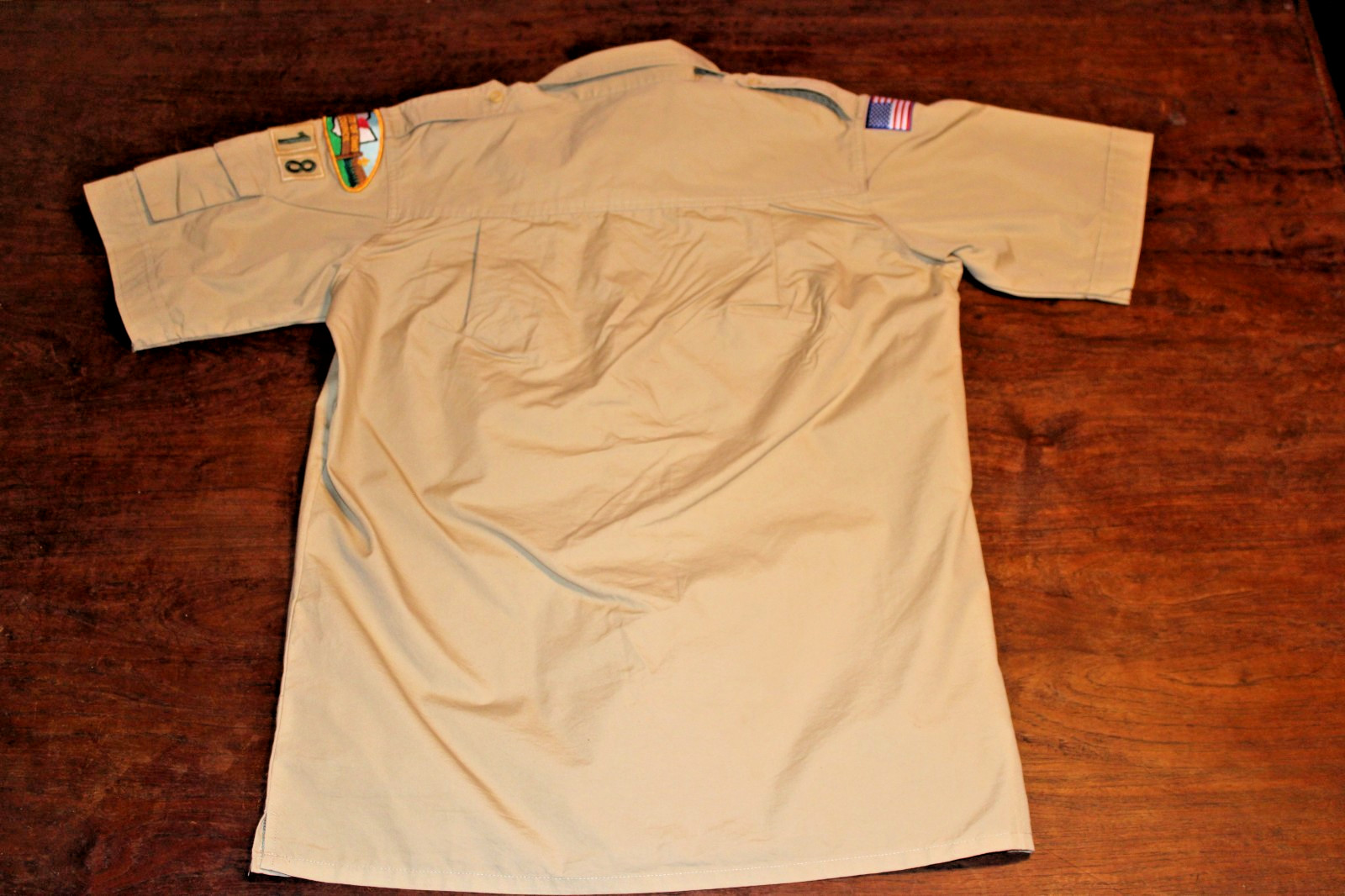 Boy Scouts of America BSA Men's Shirt Tan Medium Sewn Patches Short Sleeve