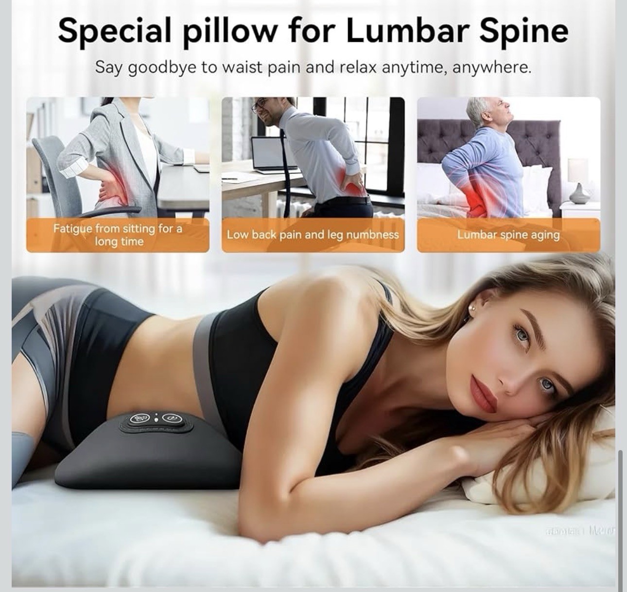 как выглядит 3 In 1 Electric Lumbar Support Pillow Smooth Spine Triple Fusion Back Massager фото