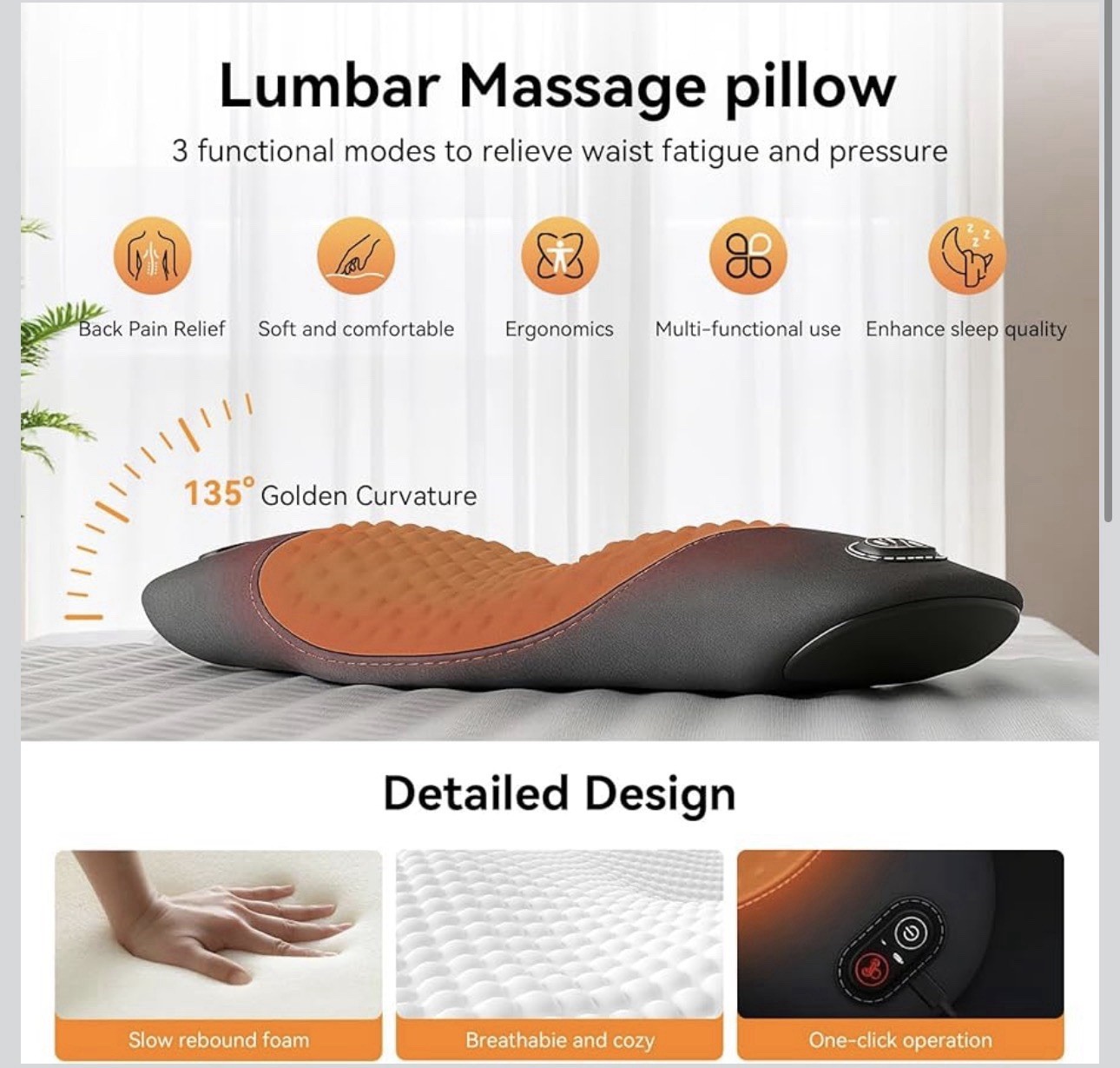 3 In 1 Electric Lumbar Support Pillow Smooth Spine Triple Fusion Back Massager