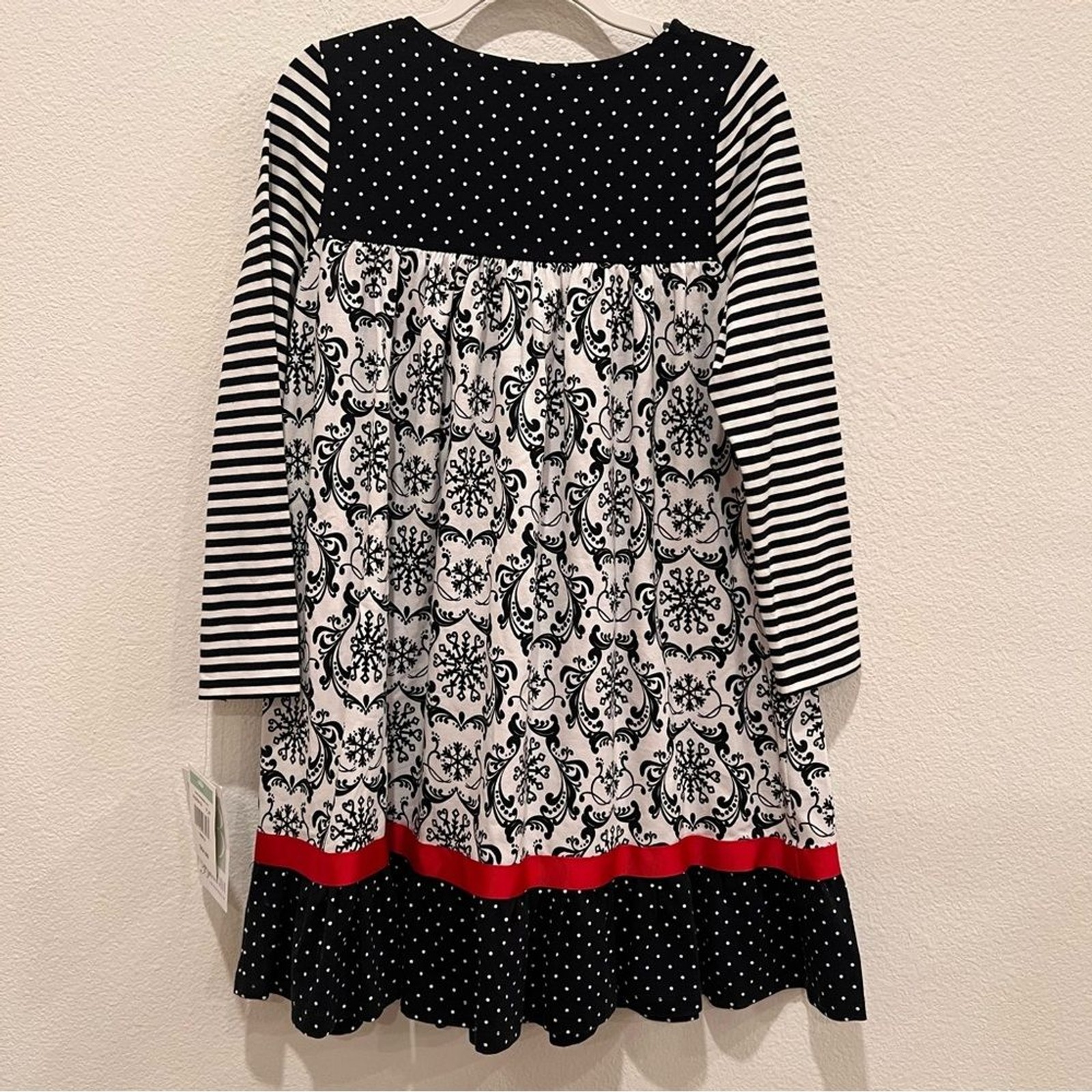 как выглядит NWT Bonnie Jean girls dress size 8 mixed media white black holidays polka dot фото