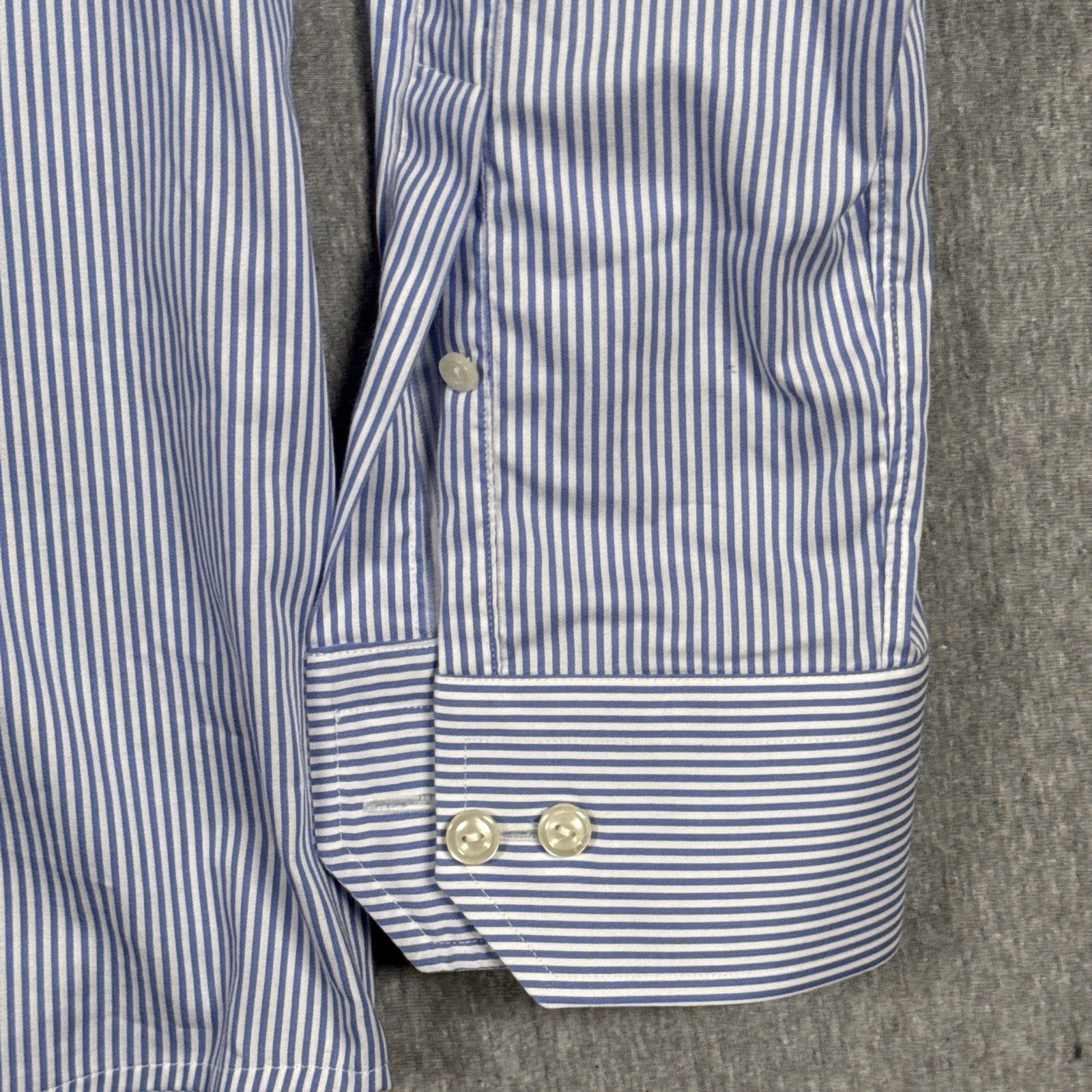 Eton Dress Shirt Mens 16.5 42 Blue Stripe Contemporary Long Sleeve Spread Collar