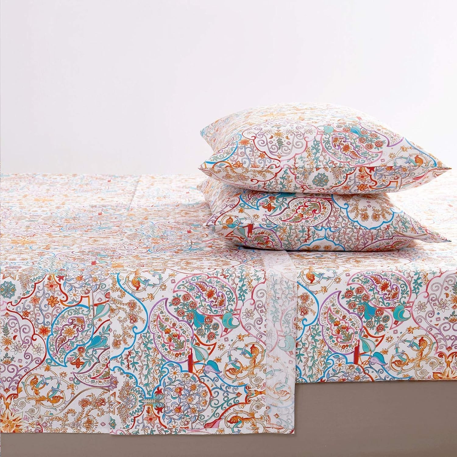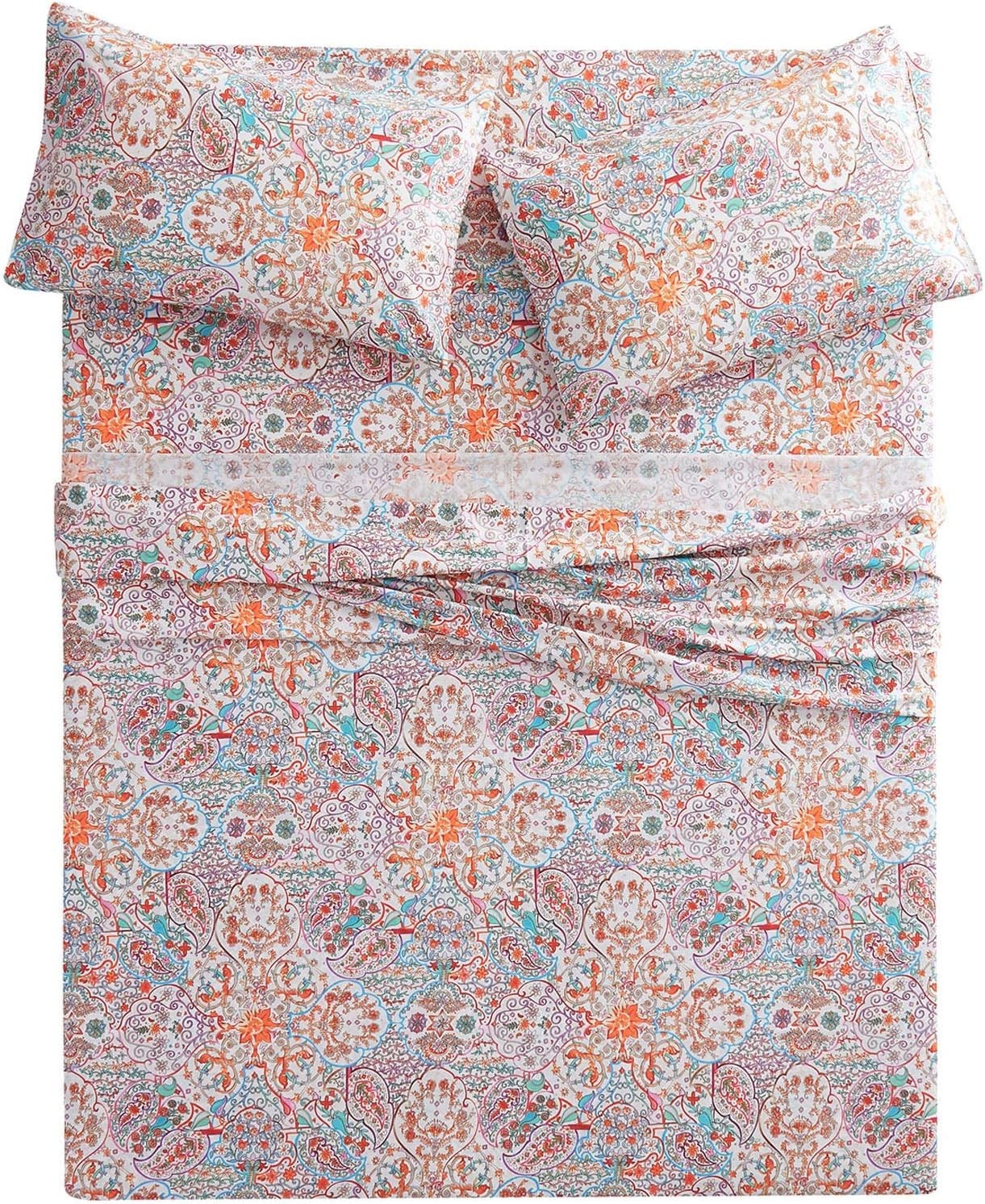 Boho Queen Size Bed Sheets - 100 Cotton, Vibrant Paisley Pattern, 4-Piece Set