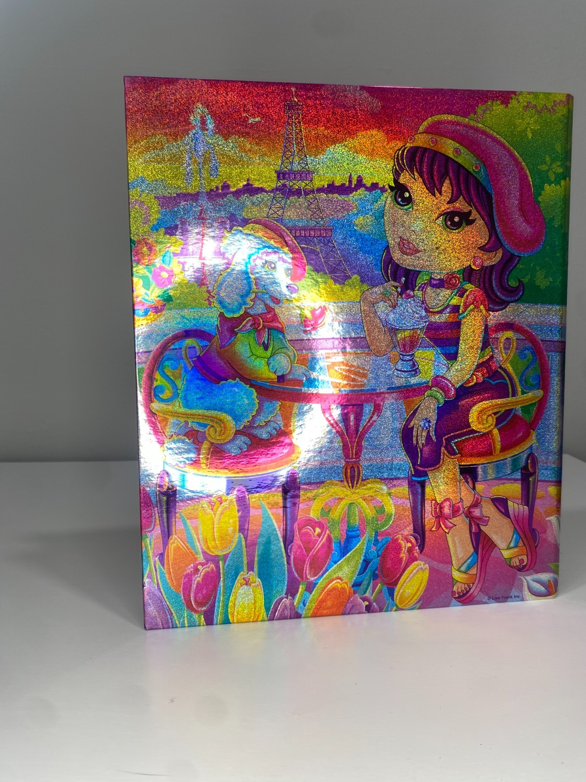 Lisa Frank 3 Ring Hard Binder Holographic Paris Girl Poodle Eiffel Tower Nice