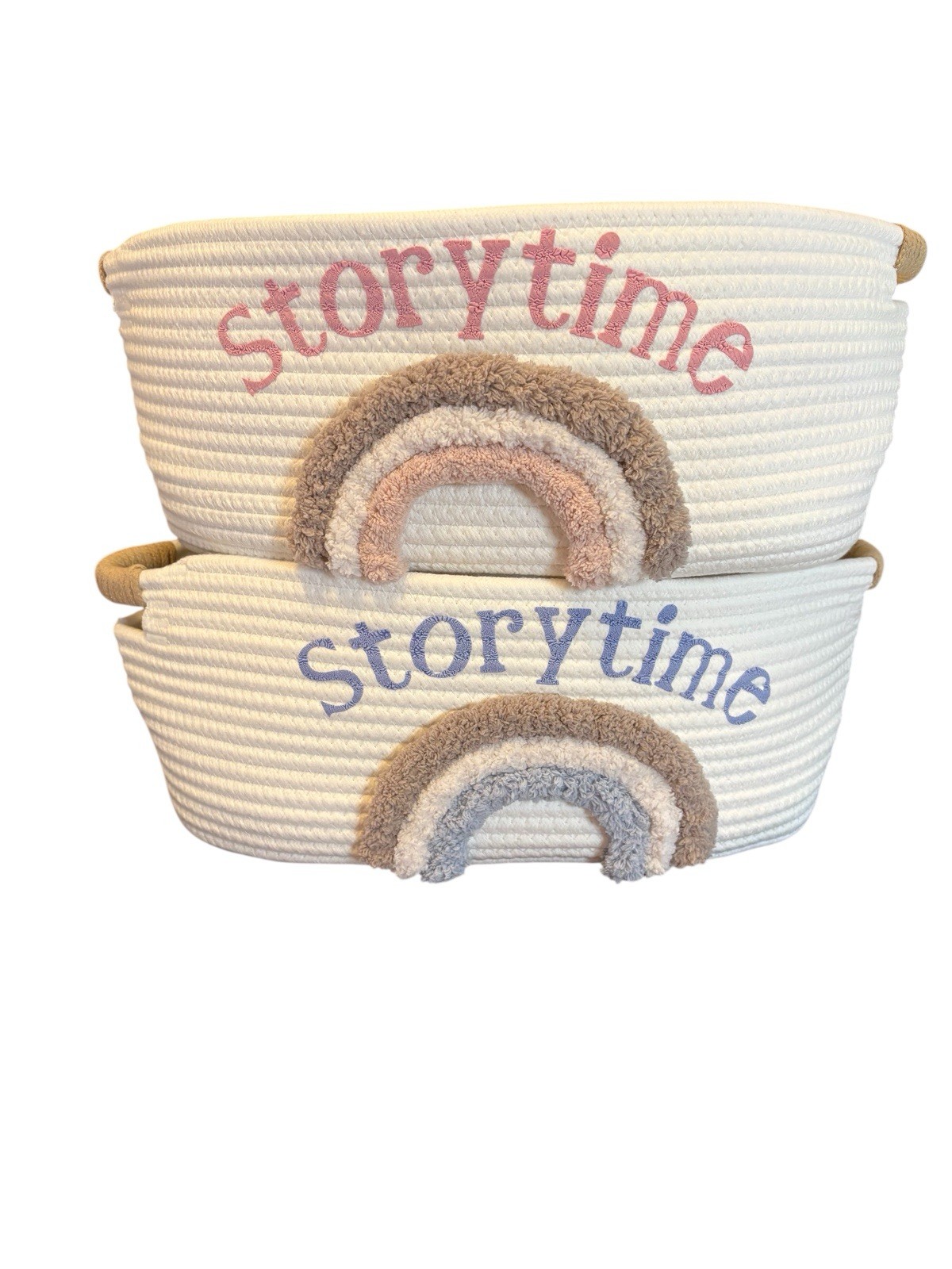 Storytime Boho Rainbow Girl Boy Book Basket Baby Newborn Shower Gift Blue Ivory