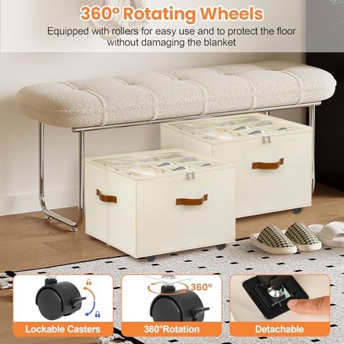 Shoe Organizer for Closet, 2 Pack Shoe Storage 17L x 17W x 12 H Beige