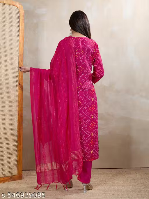 как выглядит Traditional Kurti set for women/WomenS BANDHANI Cotton Blend Straight Kurti set фото