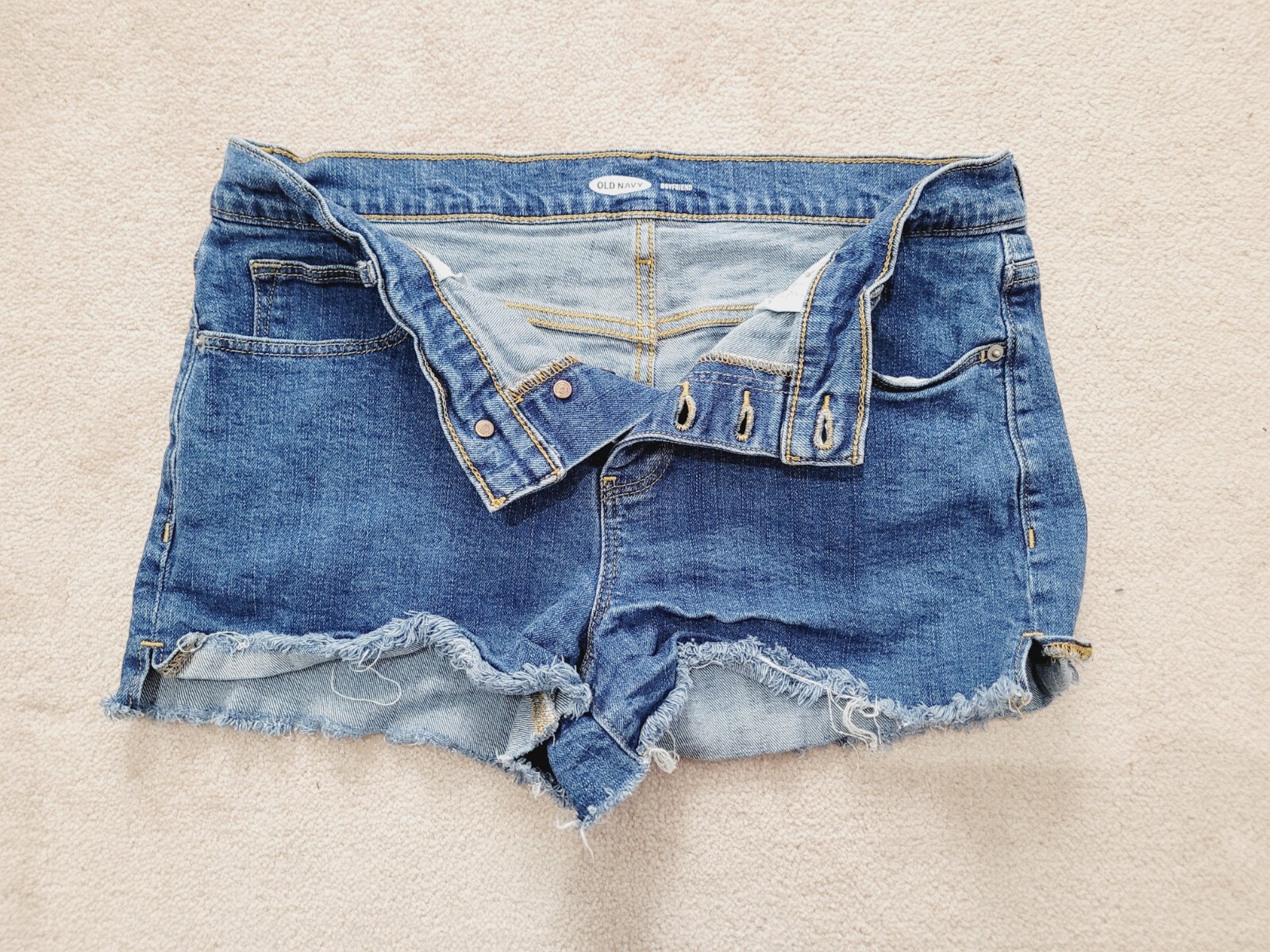 как выглядит Womans Old Navy Boyfriend Denim Cut Off Shorts Size 8 Blue Jean Button Fly фото