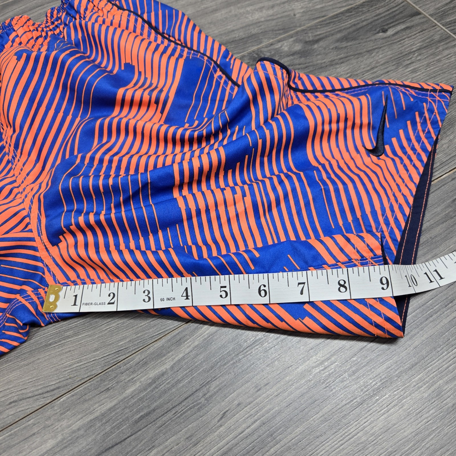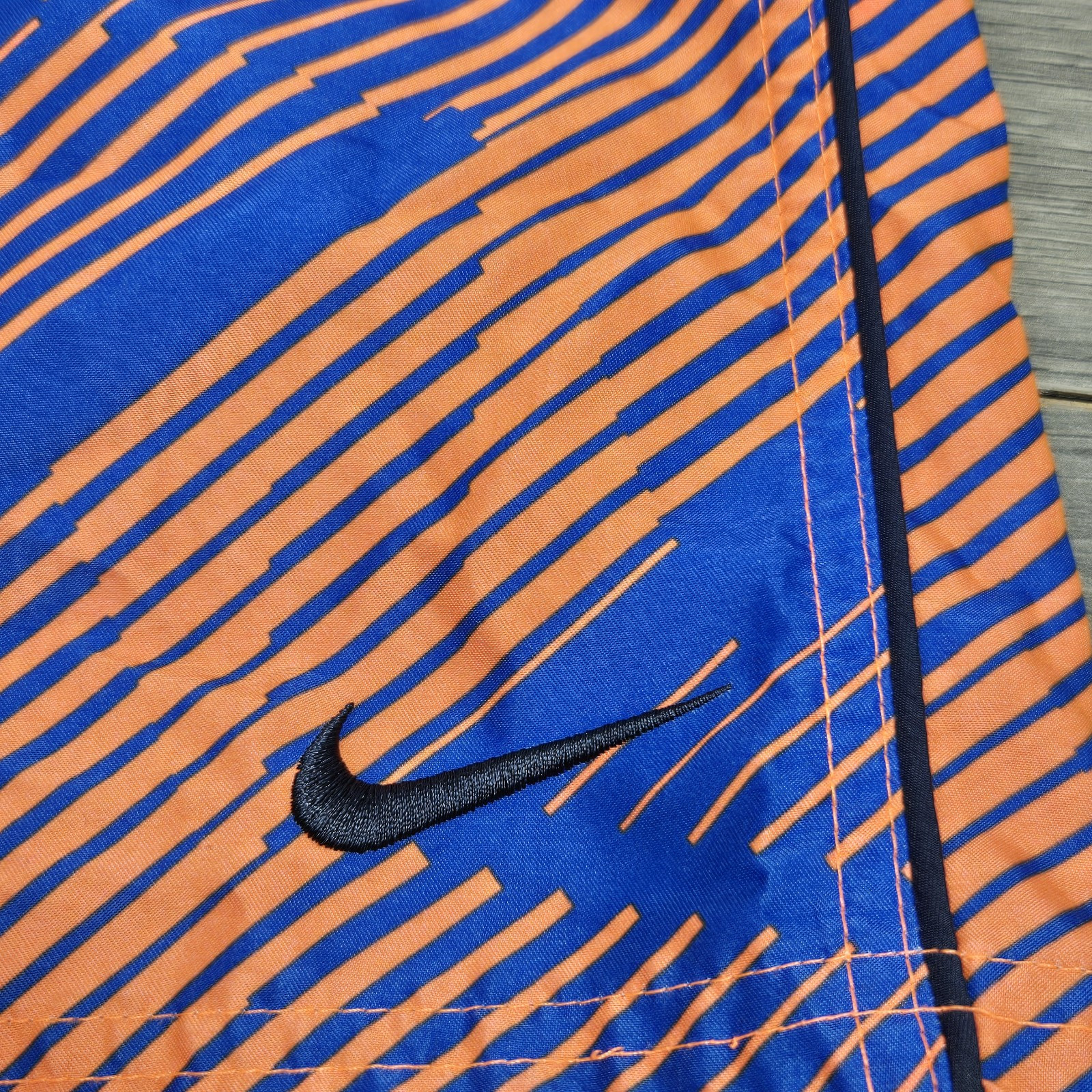 как выглядит Nike Swimming Trunks Boys L Blue Orange Striped Lined Pockets Pool Beach фото