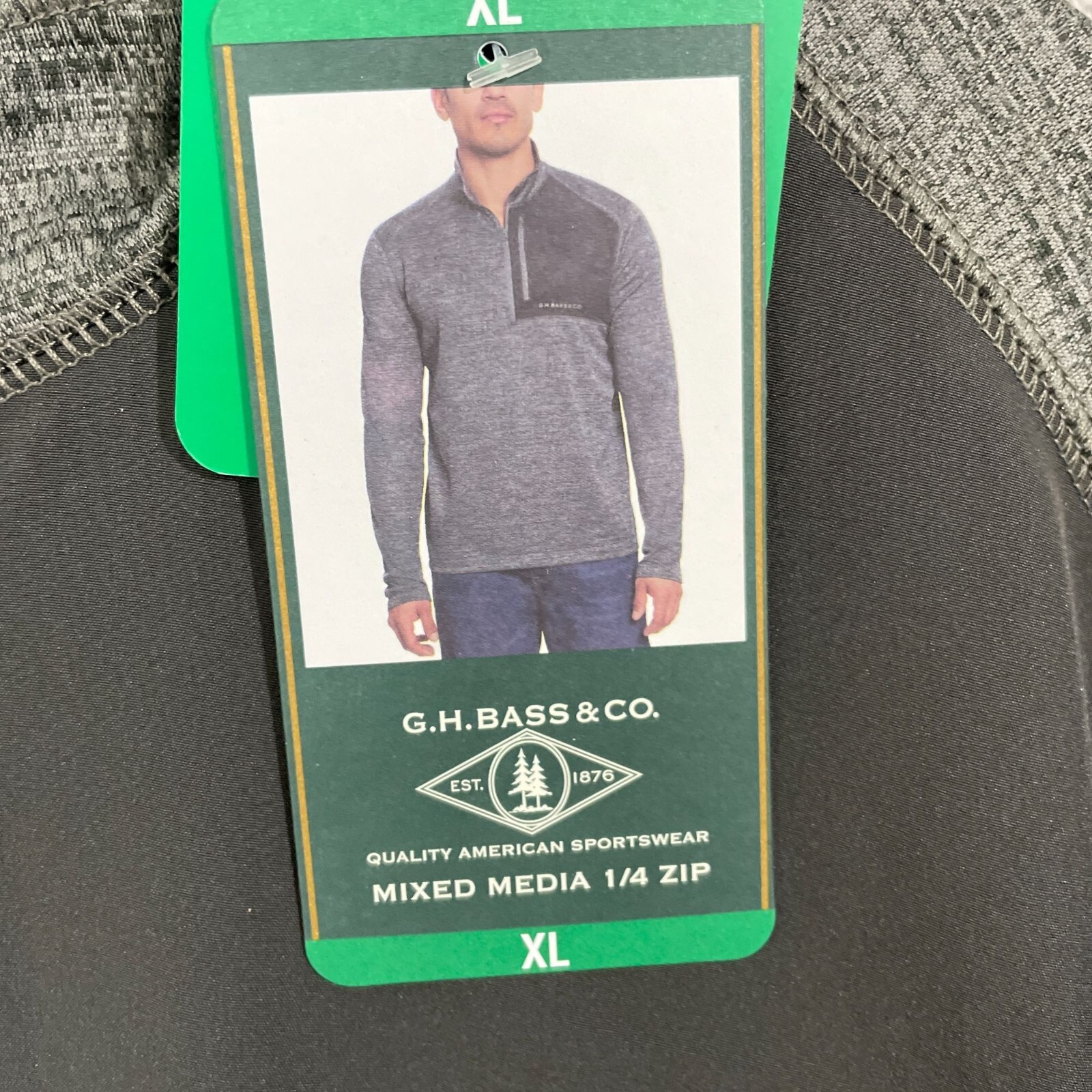 как выглядит NEW G.H. Bass Co. Mens XL Mixed Media 1/4 Zip Pullover Gray Sweatshirt фото