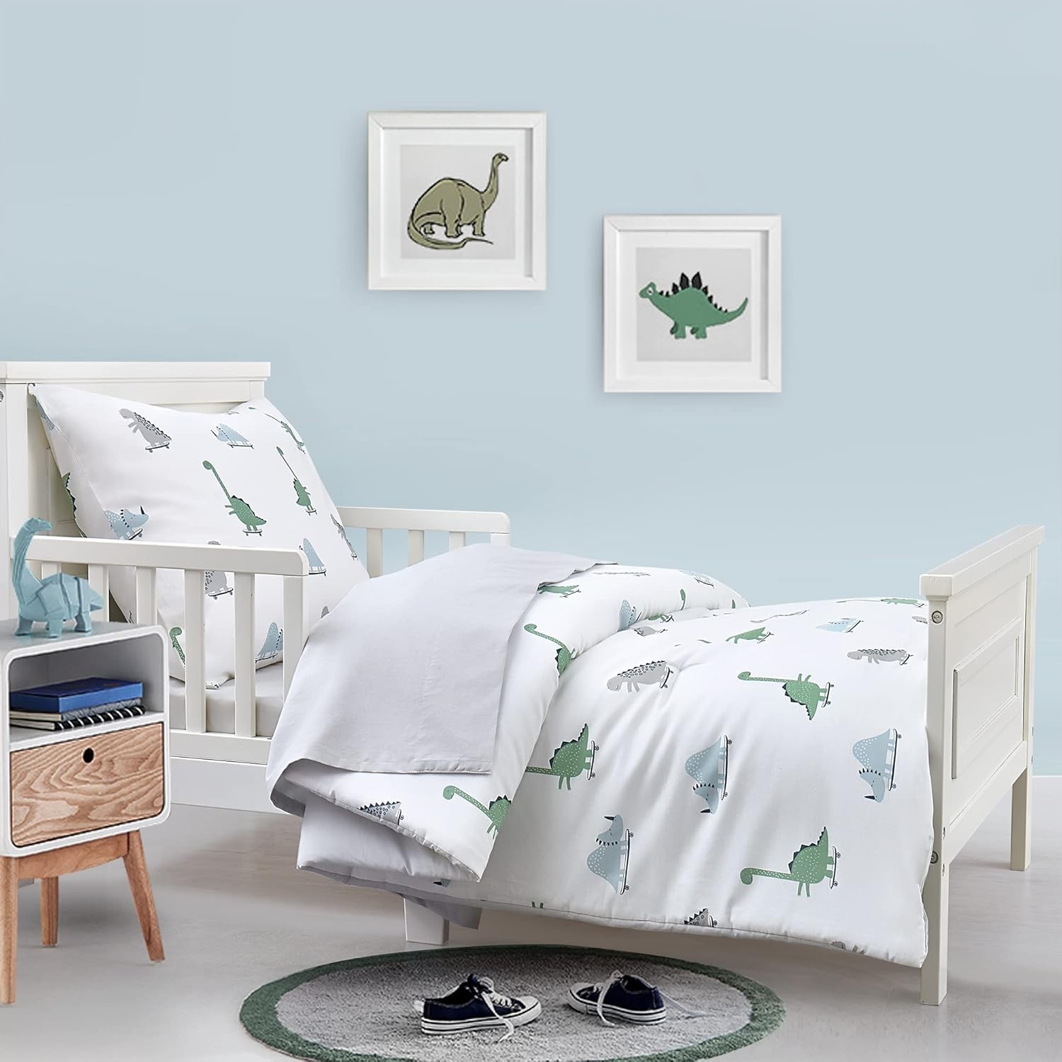 Hello Spud Dinosaurs Toddler Bed Set Comforter, Sheet Pillowcase Kids Bedd