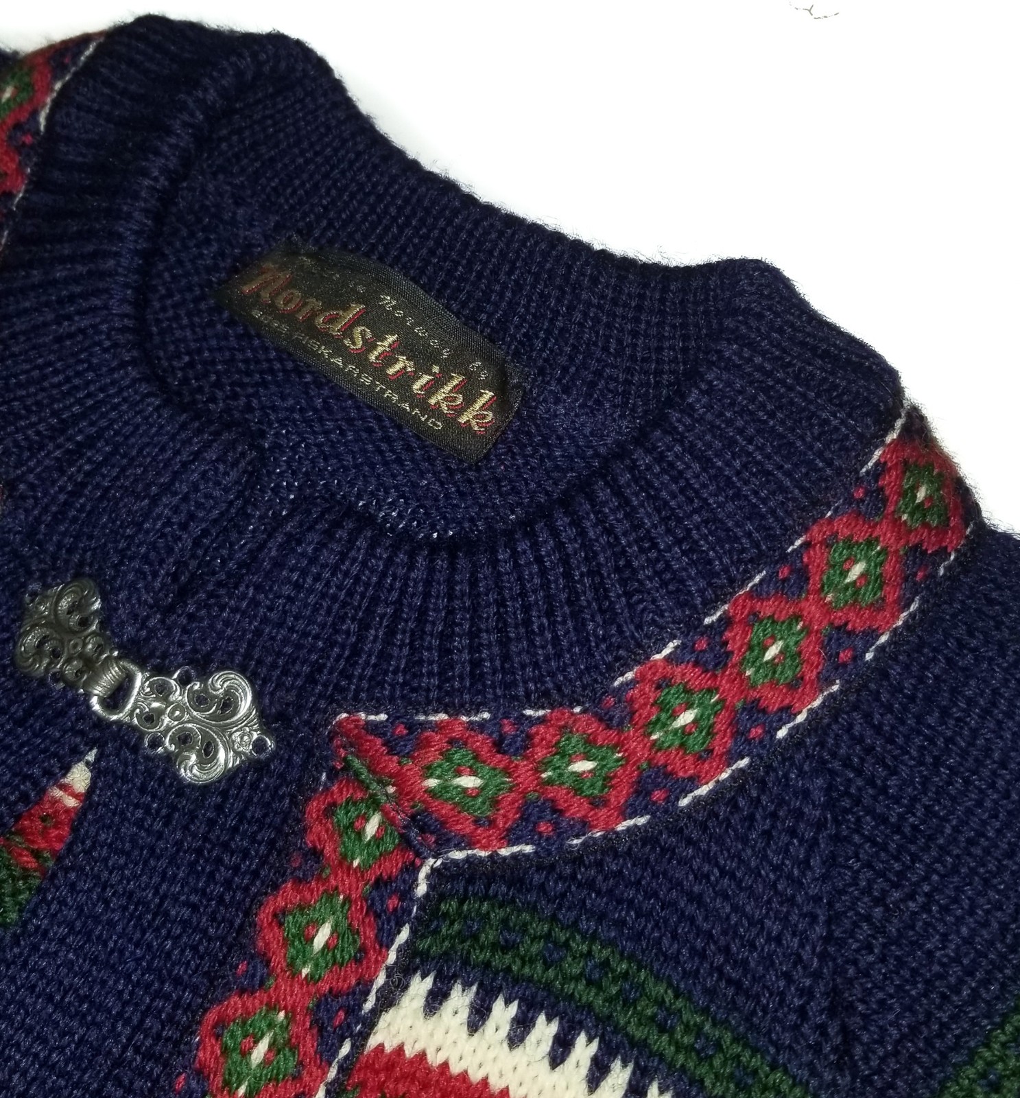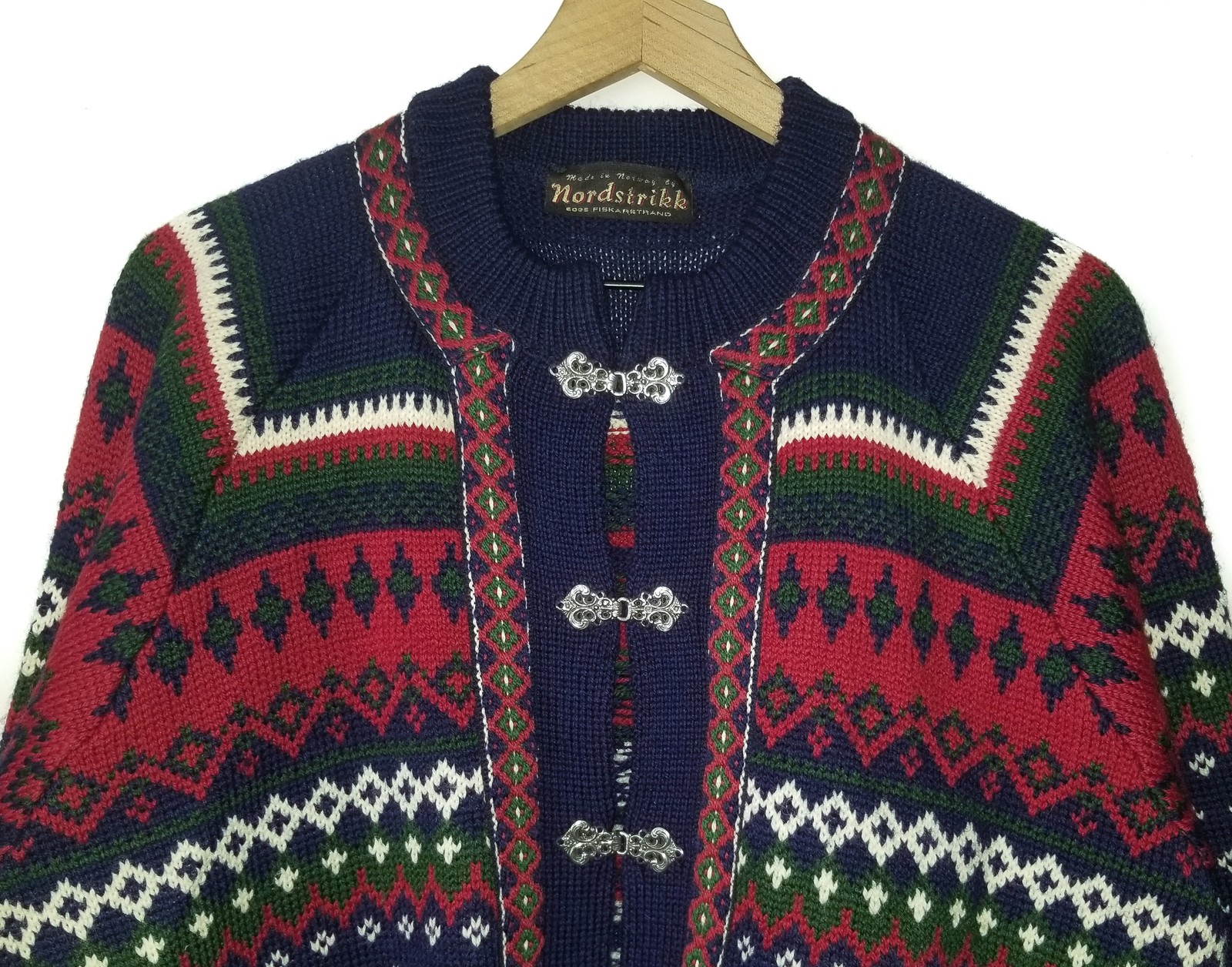 Nordstrikk Wool Cardigan Sweater Vtg Fair Isle Metal Pewter Clasp Mens NEW Sm