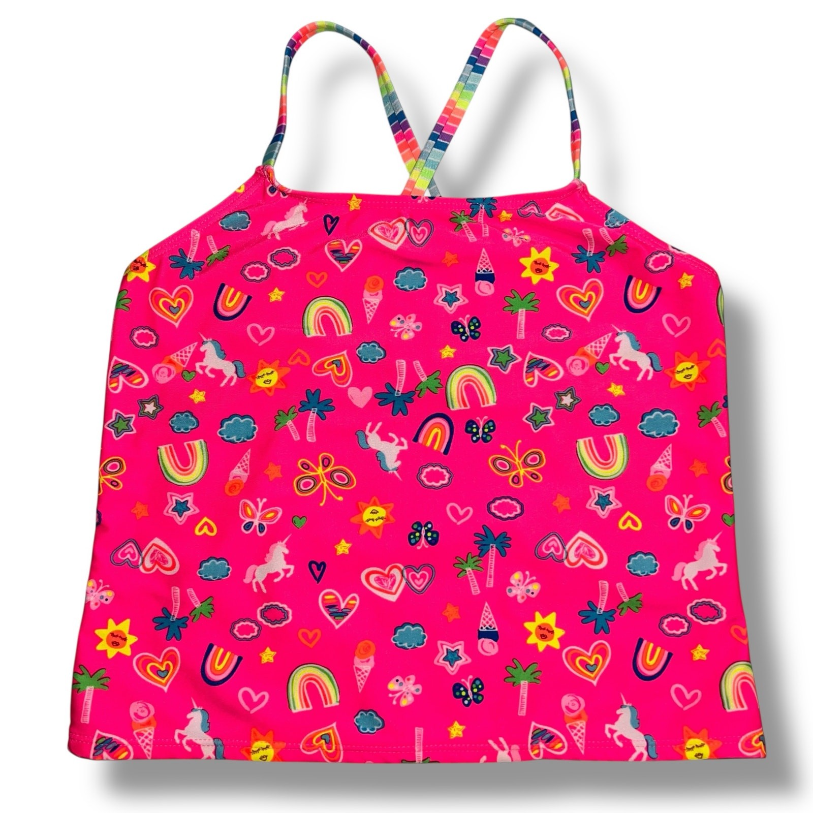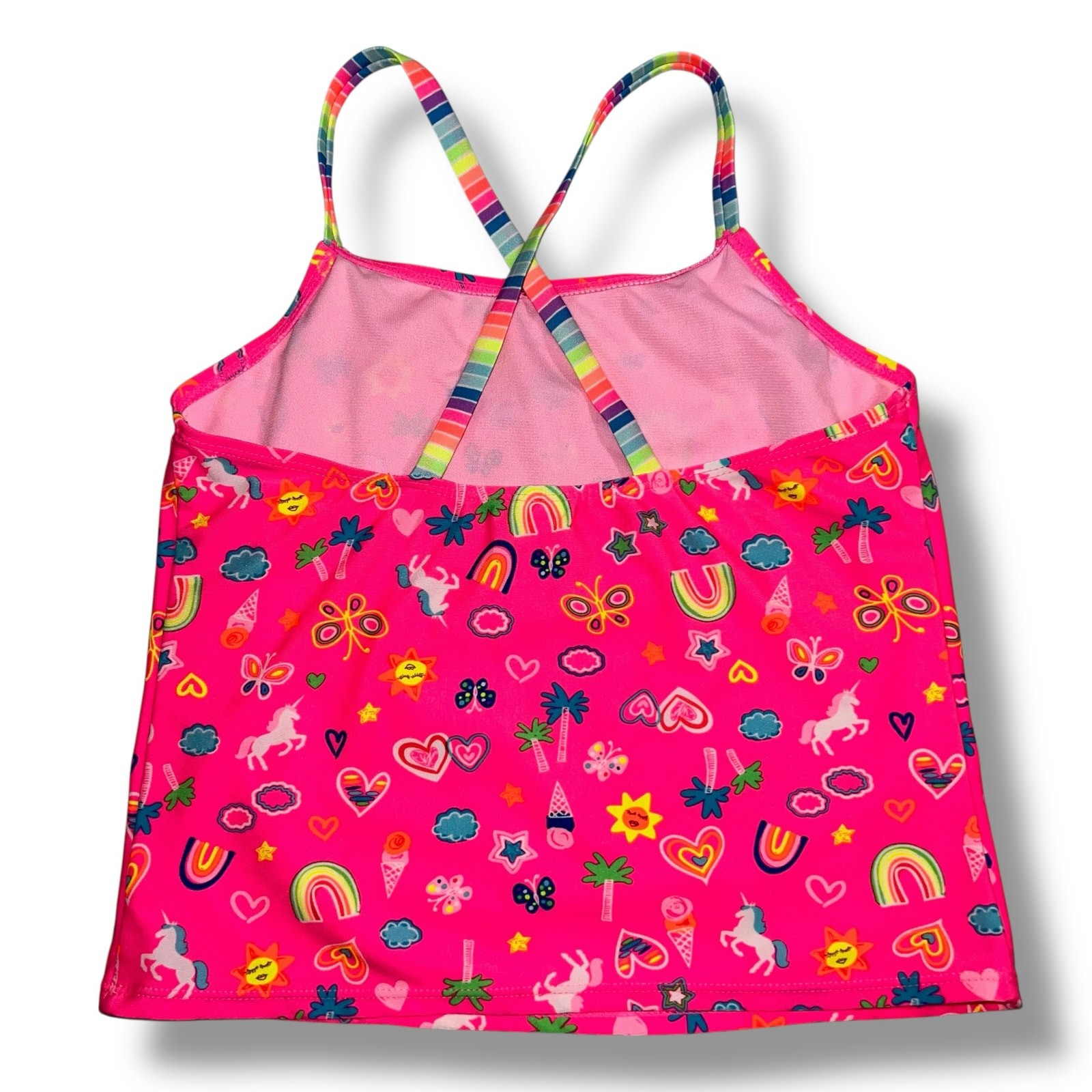 Wonder Nation Girls Tankini Swimsuit 2 Piece Set Rainbow Unicorn Stripes XL