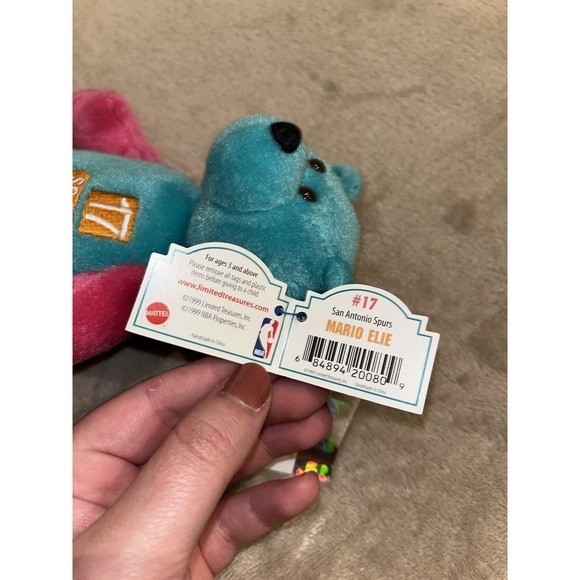 как выглядит San Antonio Spurs Mario Elie 17 Limited Treasures Pro Bear NBA Plush 1999 Teal фото