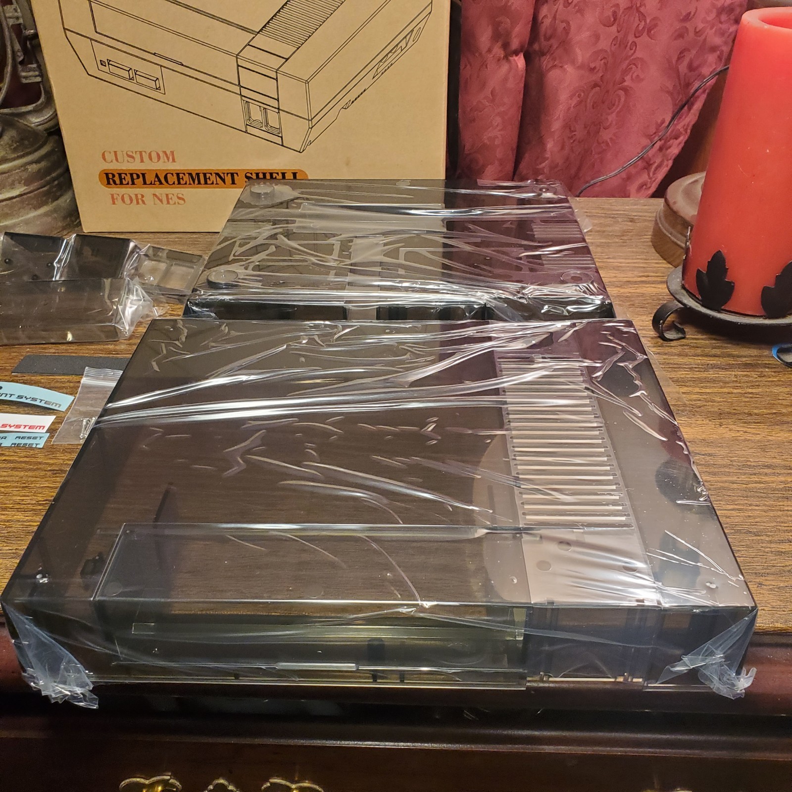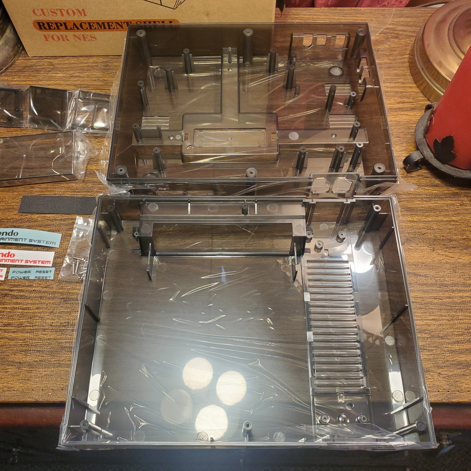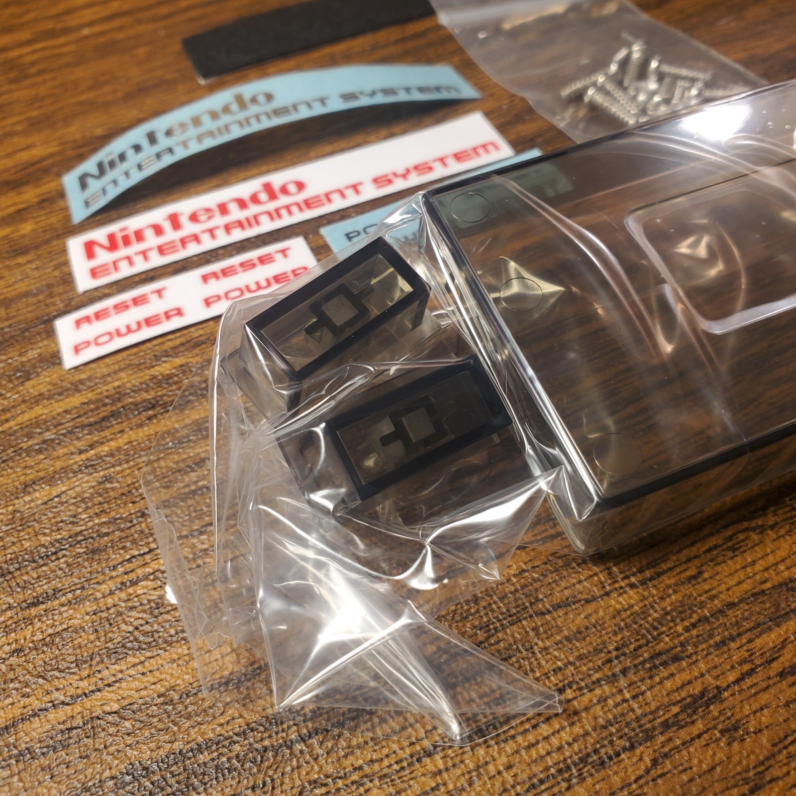 как выглядит New Replacement Shell for Nintendo NES. TRANSPARENT BLACK. Red Or Silver Sticker фото