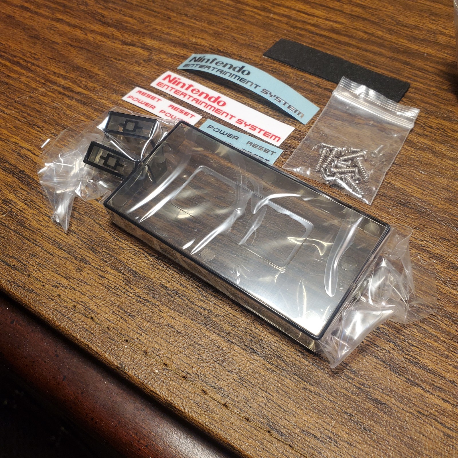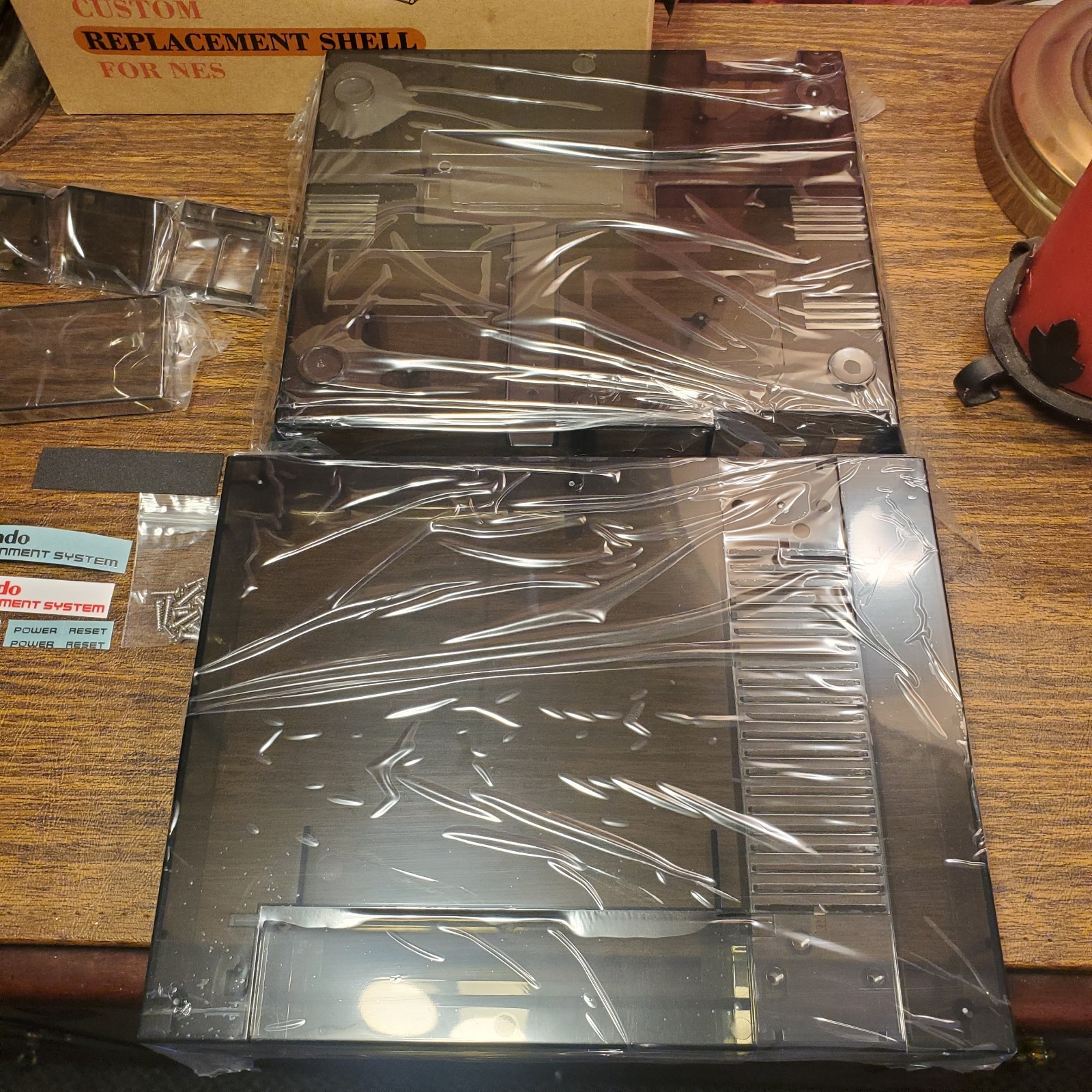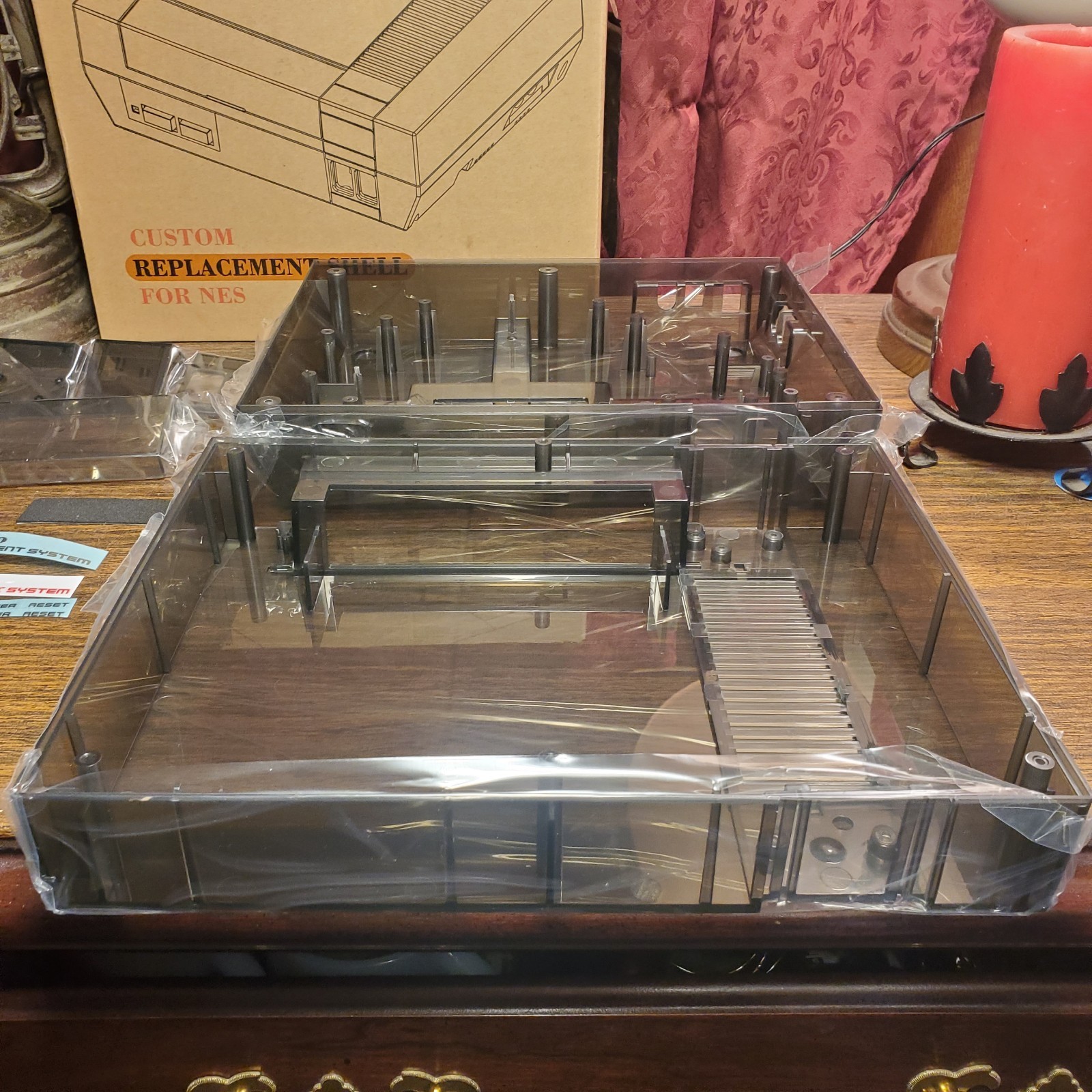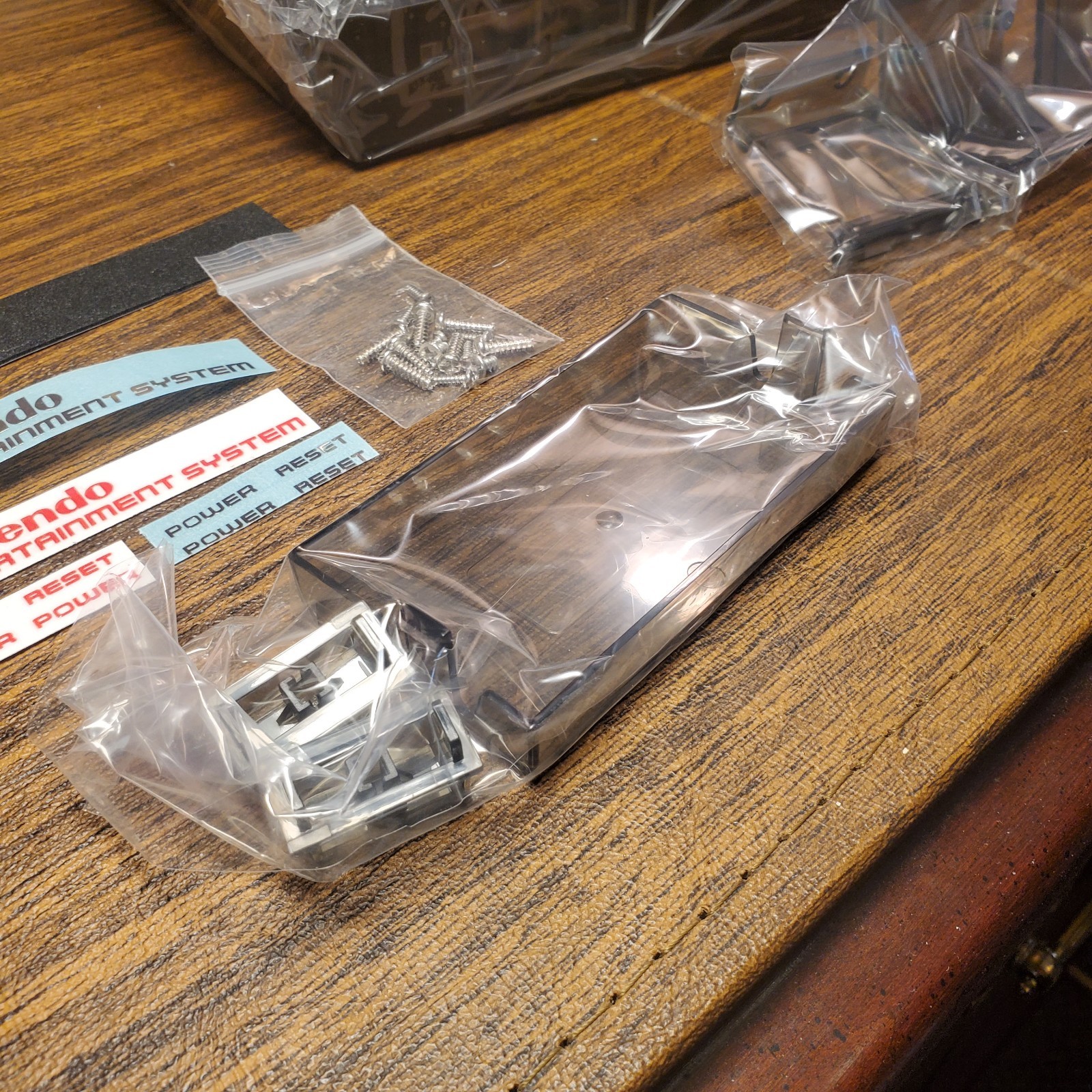 как выглядит New Replacement Shell for Nintendo NES. TRANSPARENT BLACK. Red Or Silver Sticker фото
