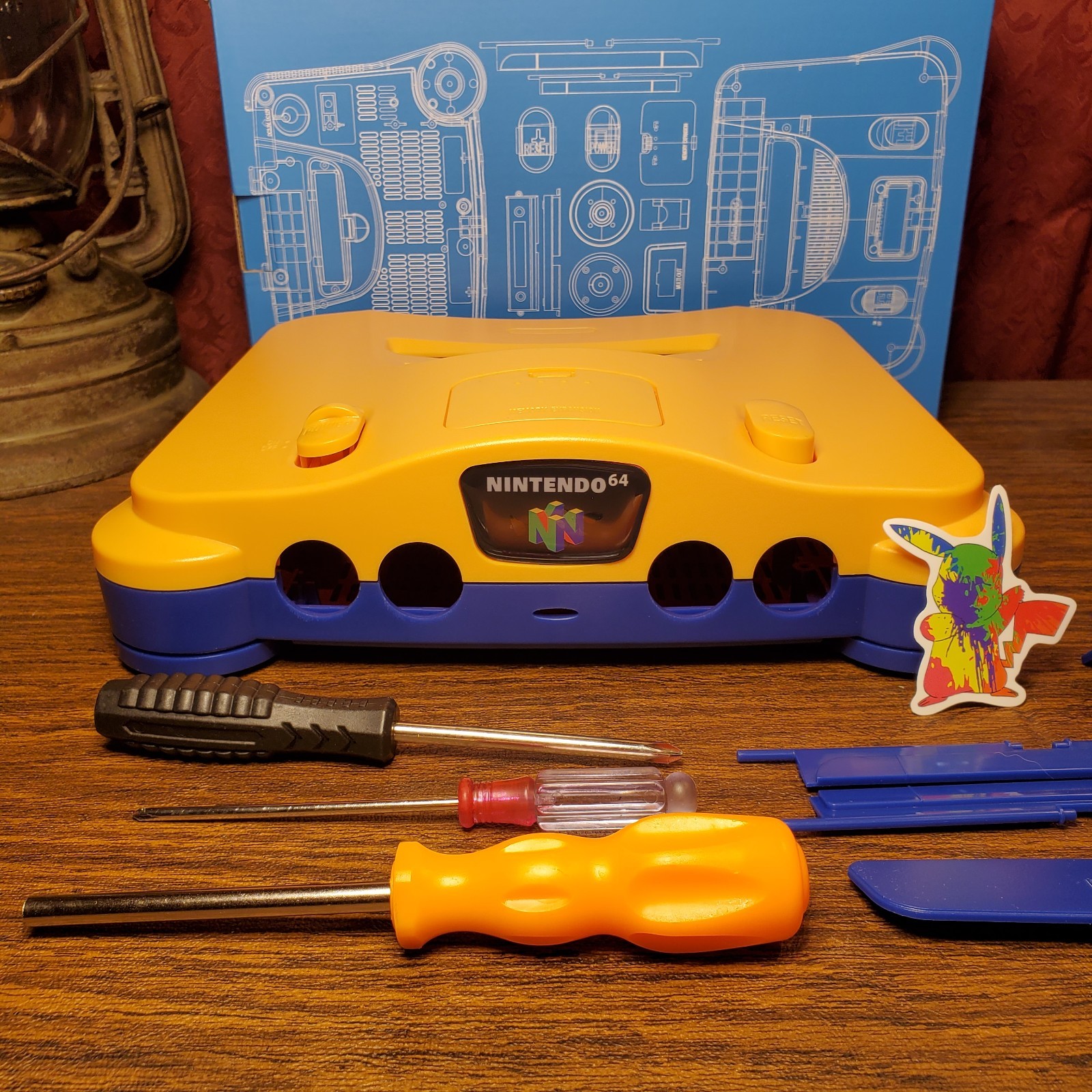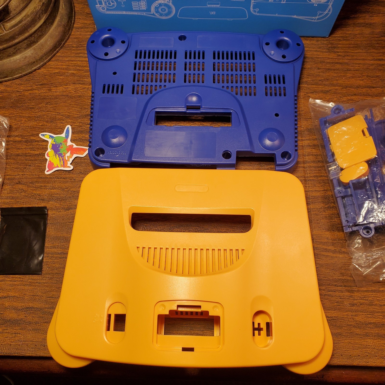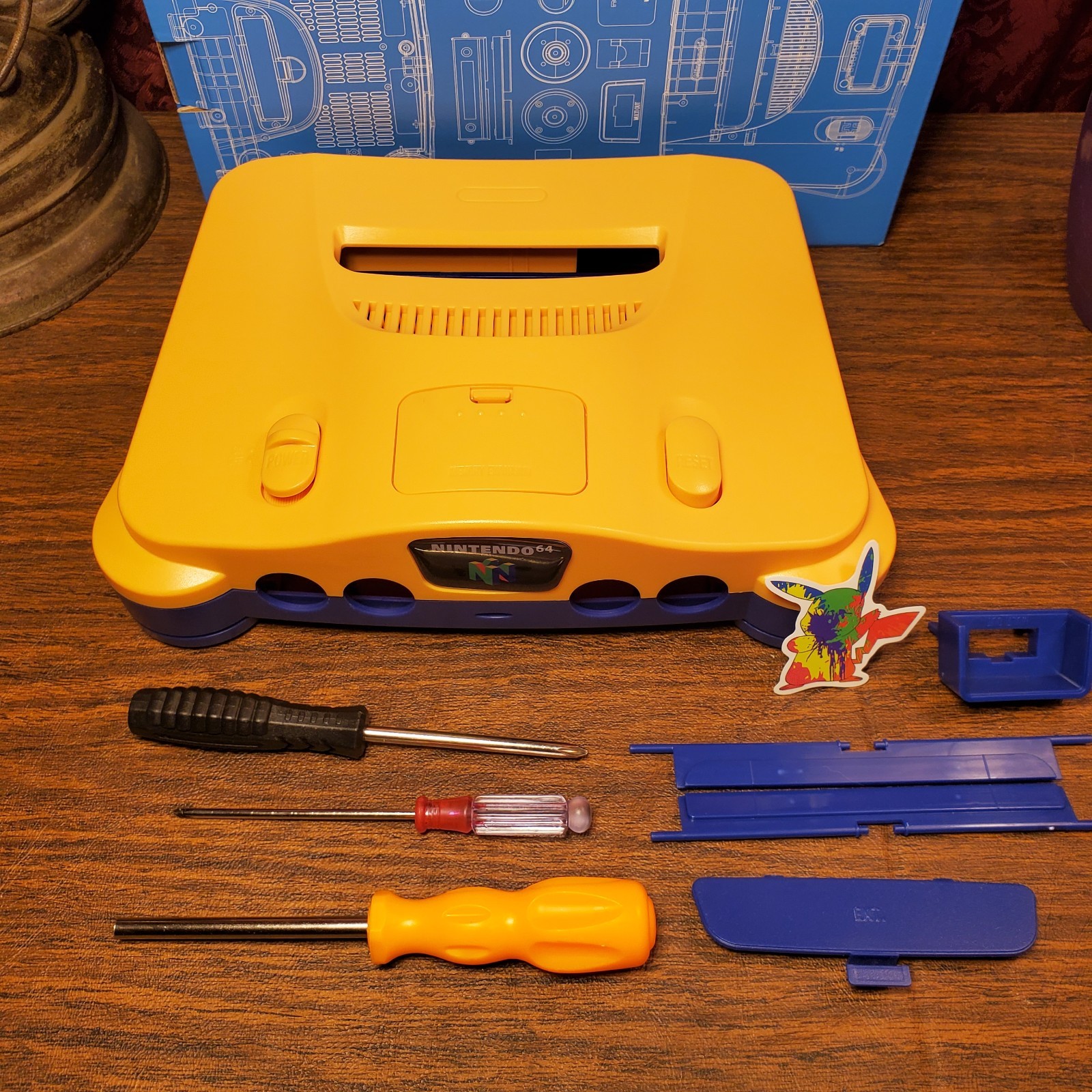 N64 Shell Replacement Shell Case. YELLOW BLUE Tools, Sticker. Region Free -USA