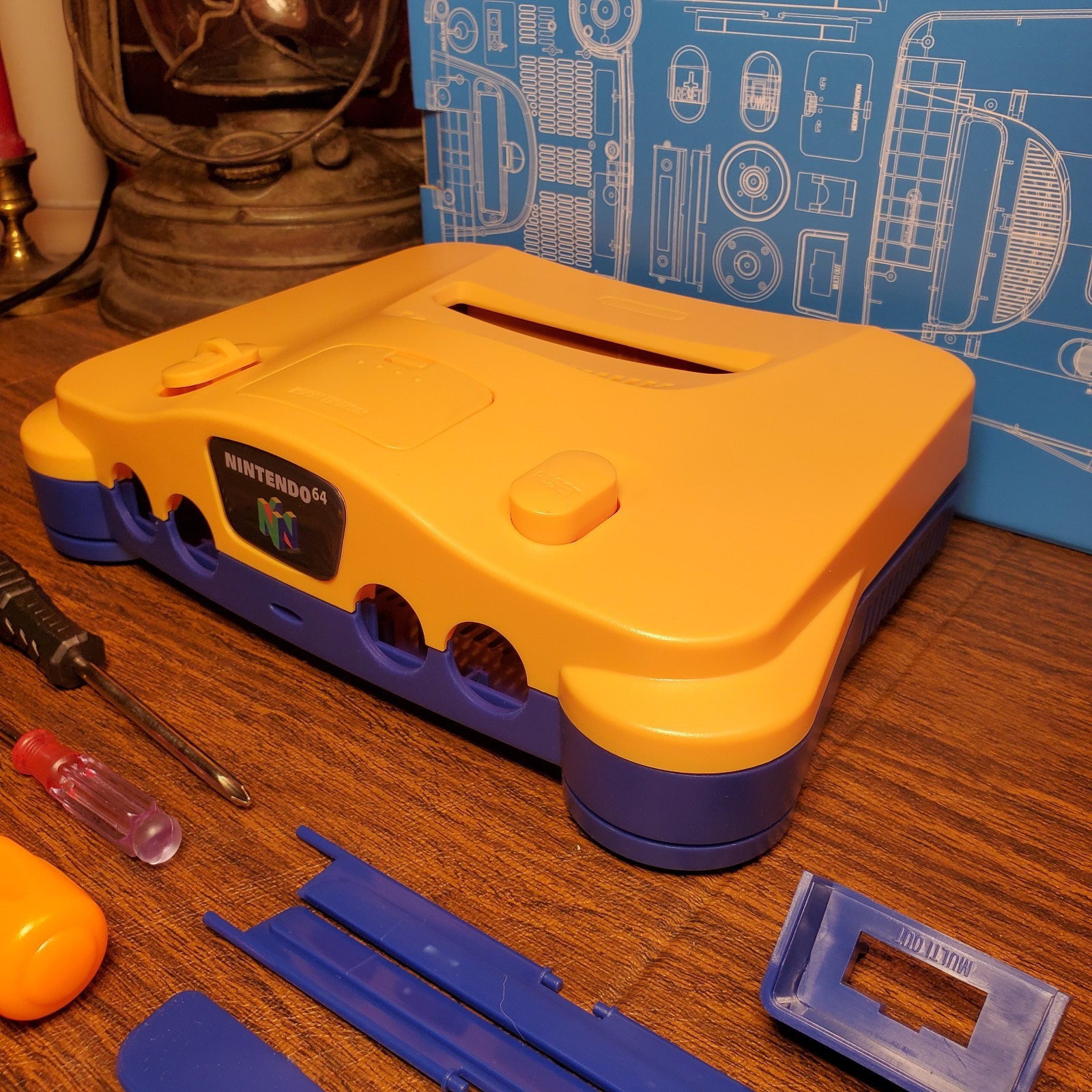 как выглядит N64 Shell Replacement Shell Case. YELLOW BLUE Tools, Sticker. Region Free -USA фото