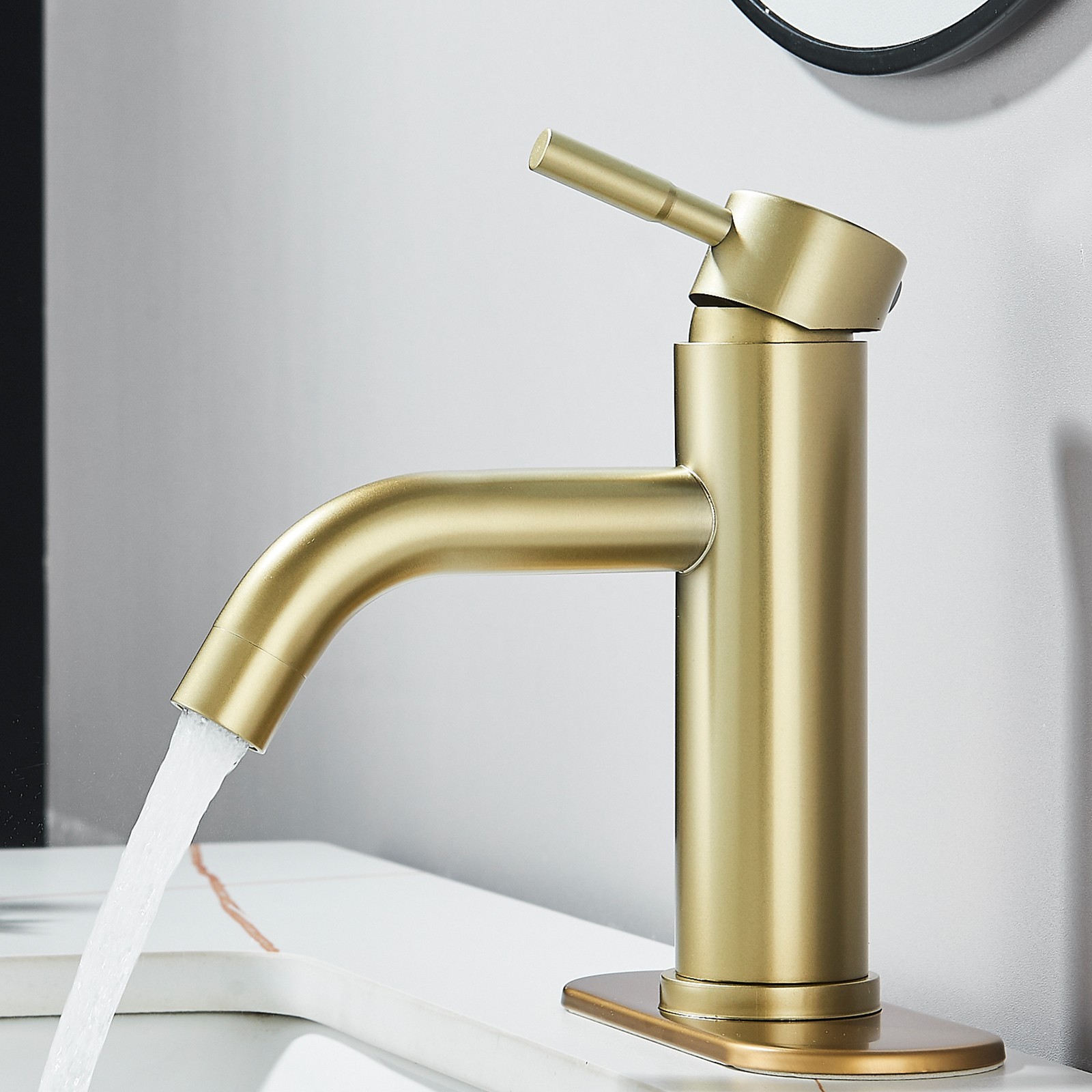 Brushed Gold Bathroom Sink Faucet 1 Hole Single Handle Vanity Mixer with Drain