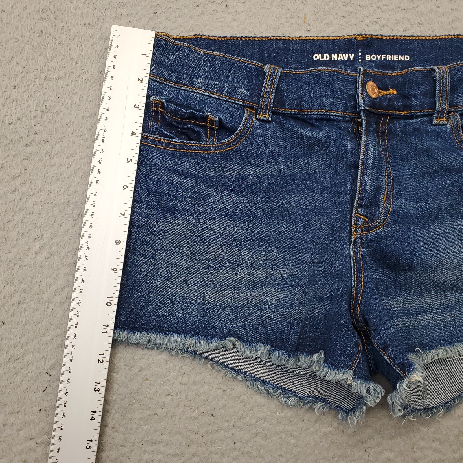 как выглядит Old Navy Boyfriend Shorts Womens 8 Blue Denim Stretch Raw Hem Faded Whiskered фото