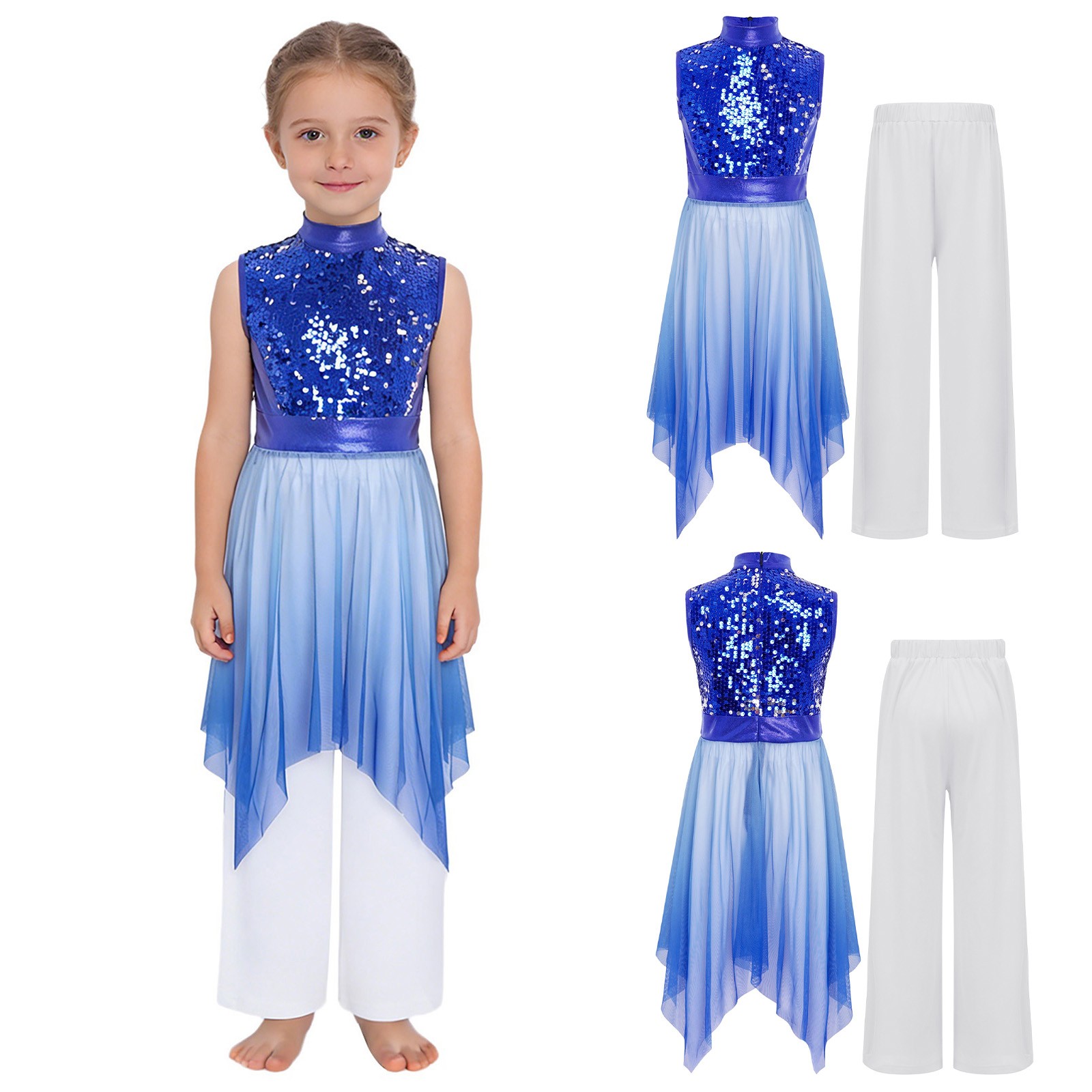 как выглядит Girls Praise Dance Asymmetrical Hem Dress Sequins Worship Liturgical Tunic Sets фото