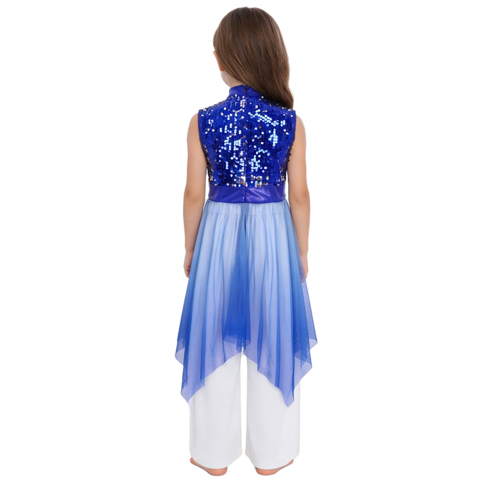 Girls Praise Dance Asymmetrical Hem Dress Sequins Worship Liturgical Tunic Sets