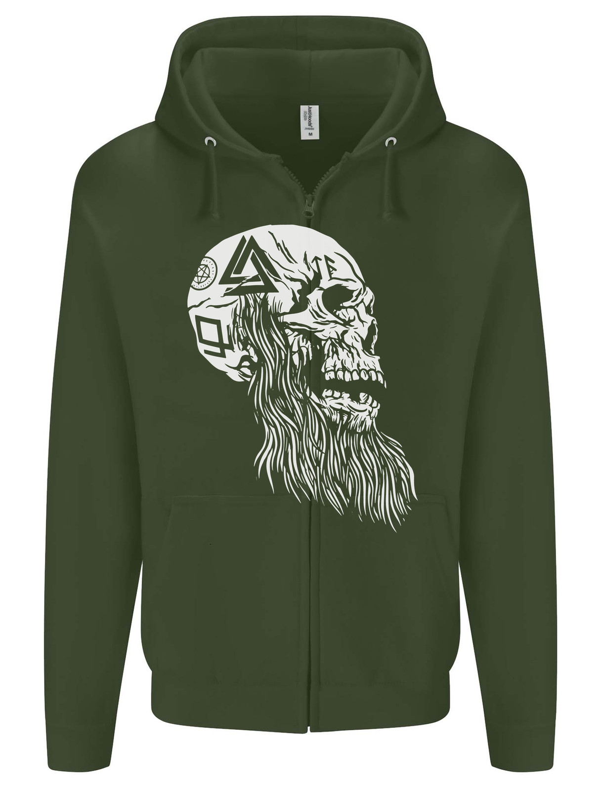 Viking Skull With Beard and Valknut Symbol Mens Zip Up Hoodie
