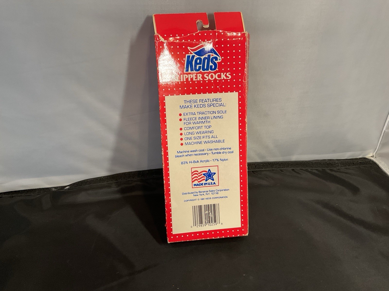 VINTAGE NEW 1981 LADIES KEDS TOASTIES THE SLIPPER SOCK USA Blue Flower One Size