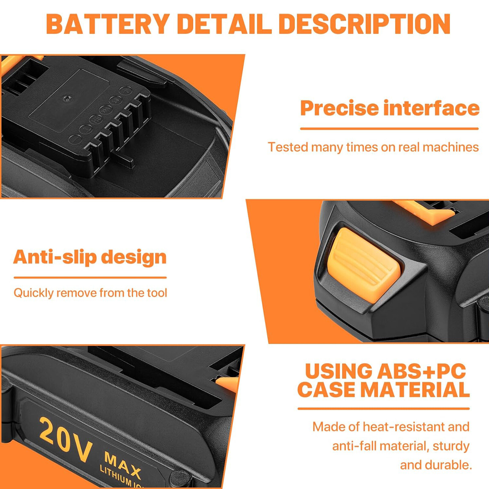 2 Pack 3.5Ah Replacement for Worx 20V PowerShare Lithium-ion Battery WA3669