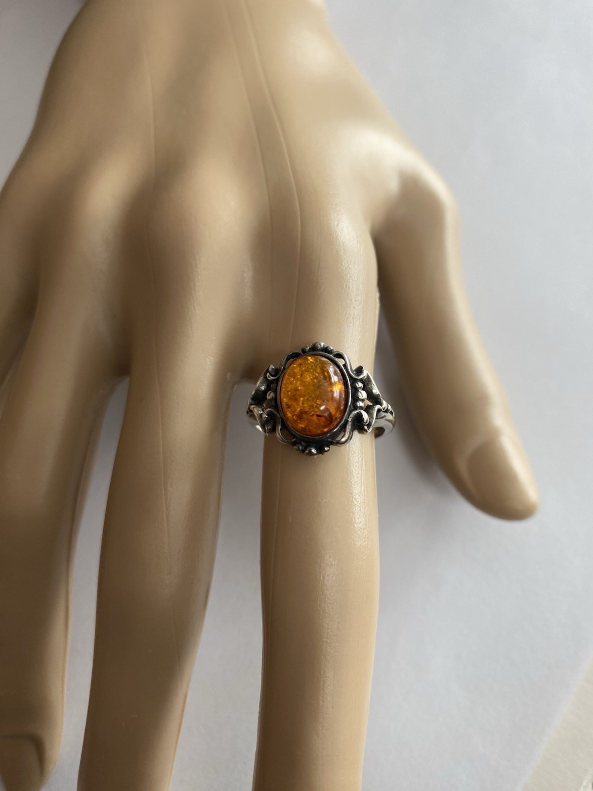 как выглядит Vintage Sterling Silver Oval Amber Cabochon Ring, Size 8 фото
