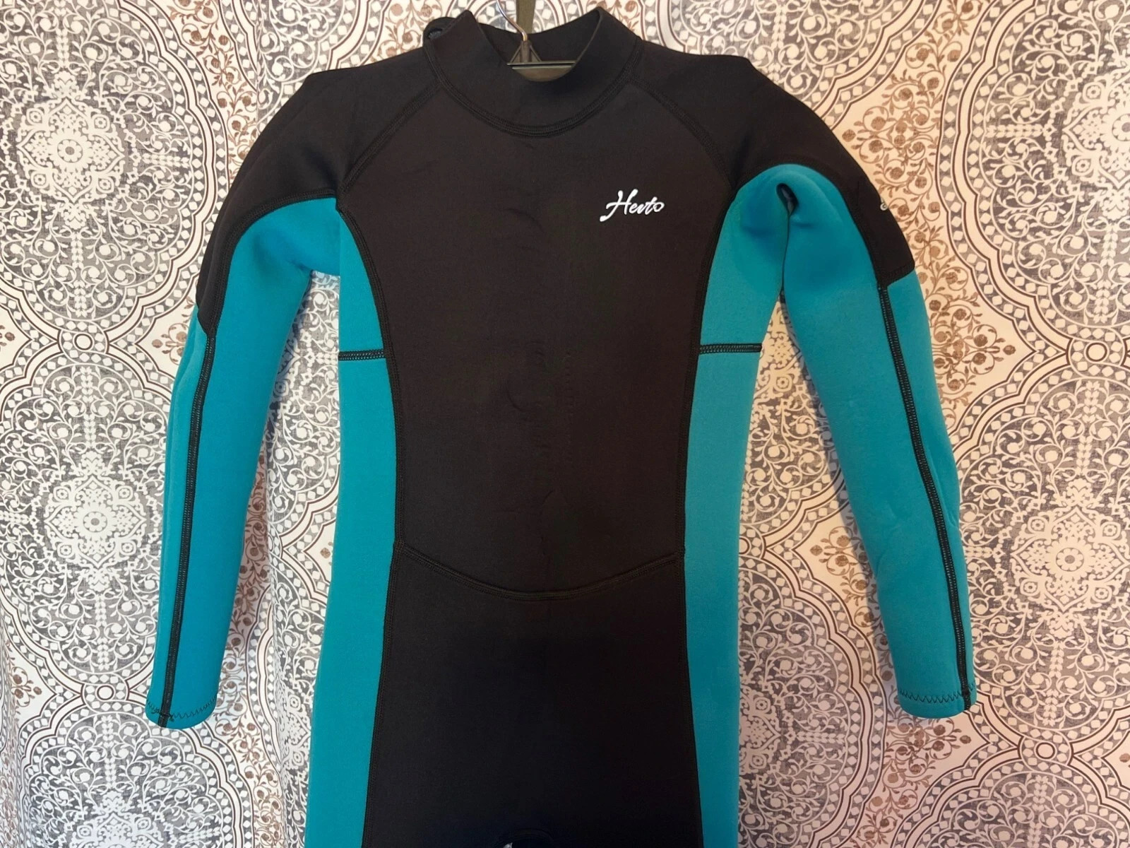 HEVTO Kids Guardian Full Body Wetsuit In Black Turquoise Neoprene size 11