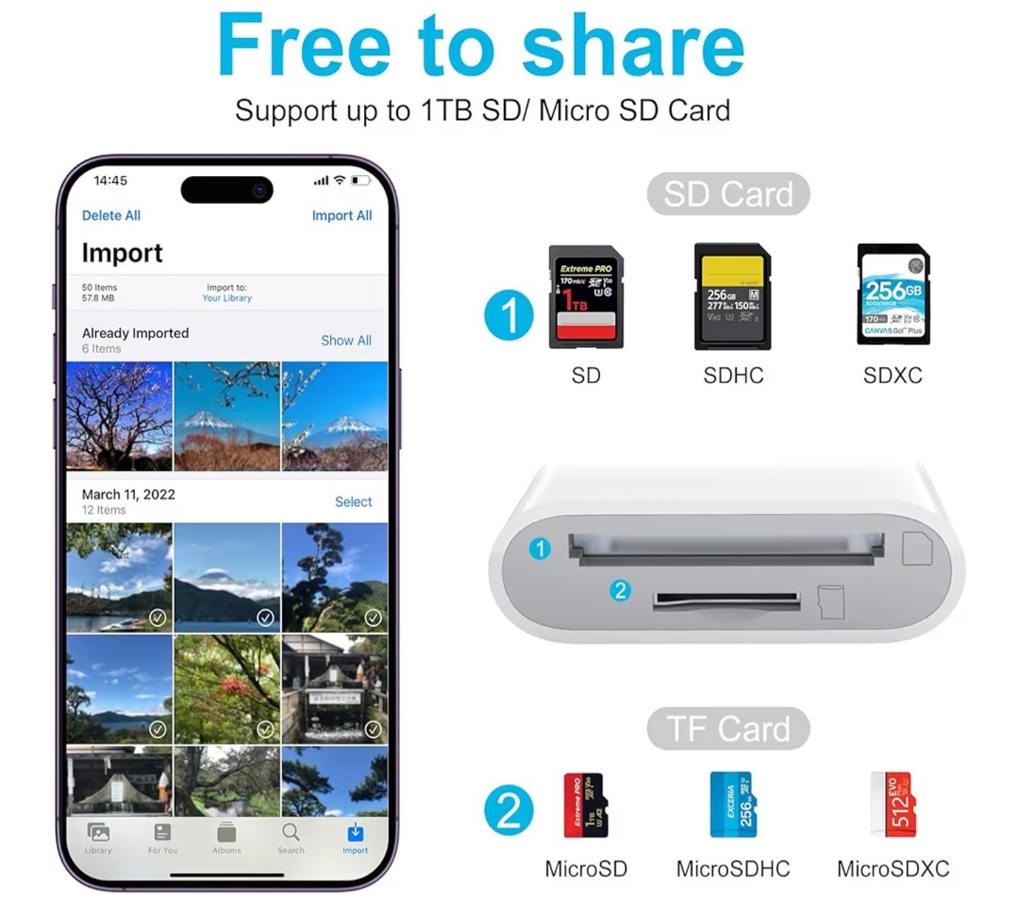[Accessories for iPhone with Dual Card Slots]: Card Reader for iPhone Support SD Card and
