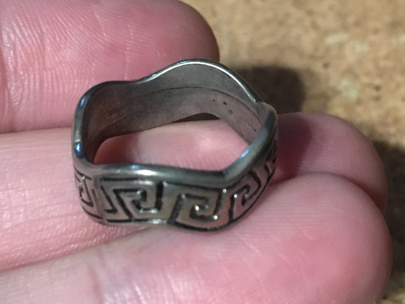 как выглядит VINTAGE STERLING SILVER GREEK KEY WAVY RING SIZE 7 / WRONGWAY052 фото