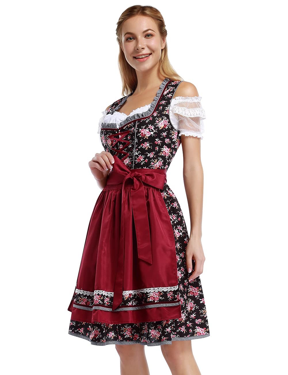 KOJOOIN Women's German Dirndl Dress Costumes for Bavarian Medium, Burgundy-24