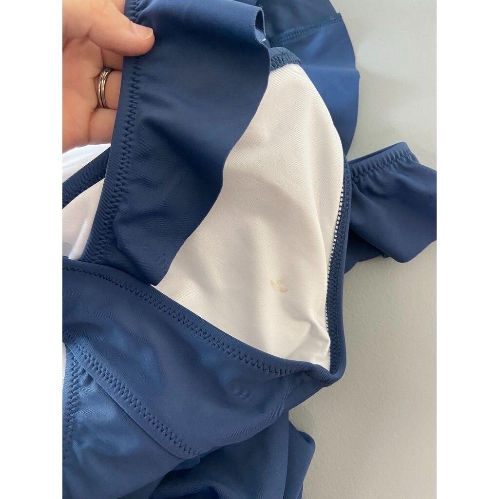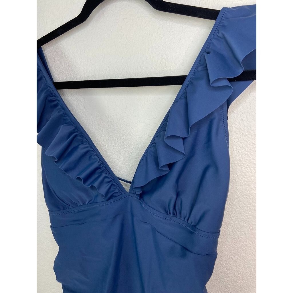 Cupshe women's XL blue plunge neck one piece swimsuit tie back ruffles