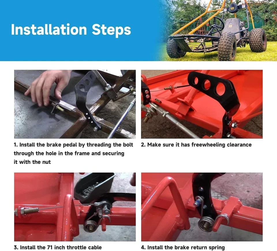 Heavy Duty Go Kart Gas Brake Pedals with Throttle Cable Kit Compatible with Most