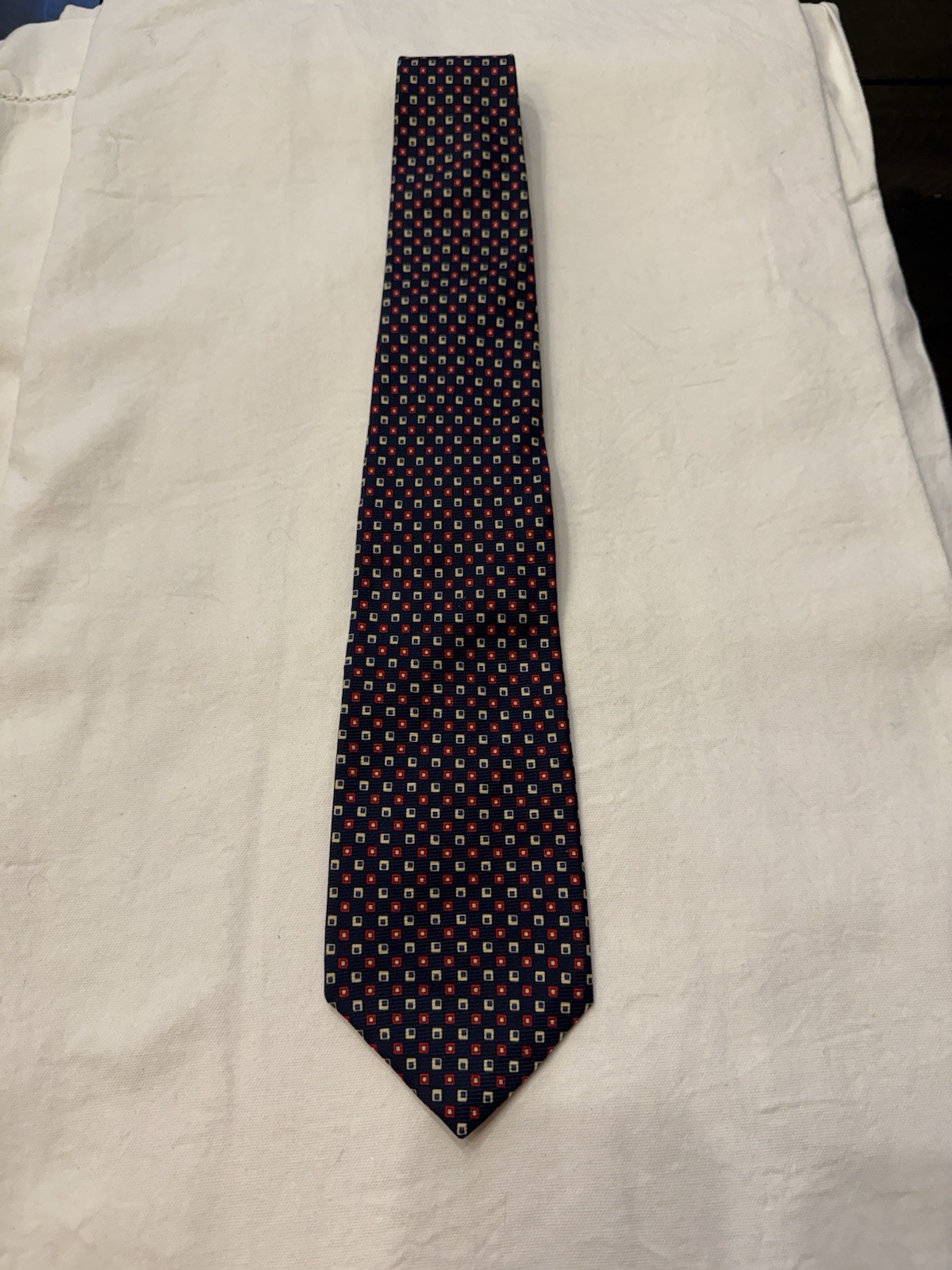 Lauren Ralph Lauren Silk Tie Navy Blue Red Cream Geometric Pattern