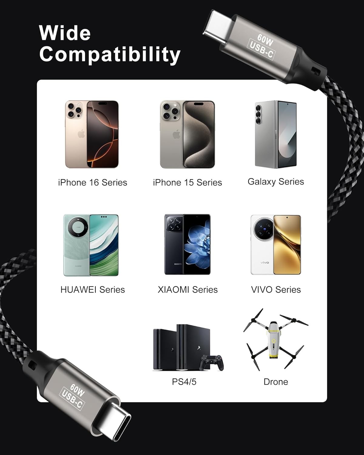 20ft/6m USB C to USB C Cable Fast Charging 60W Extra Long USB Type C new Cable
