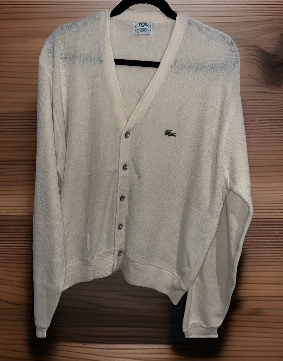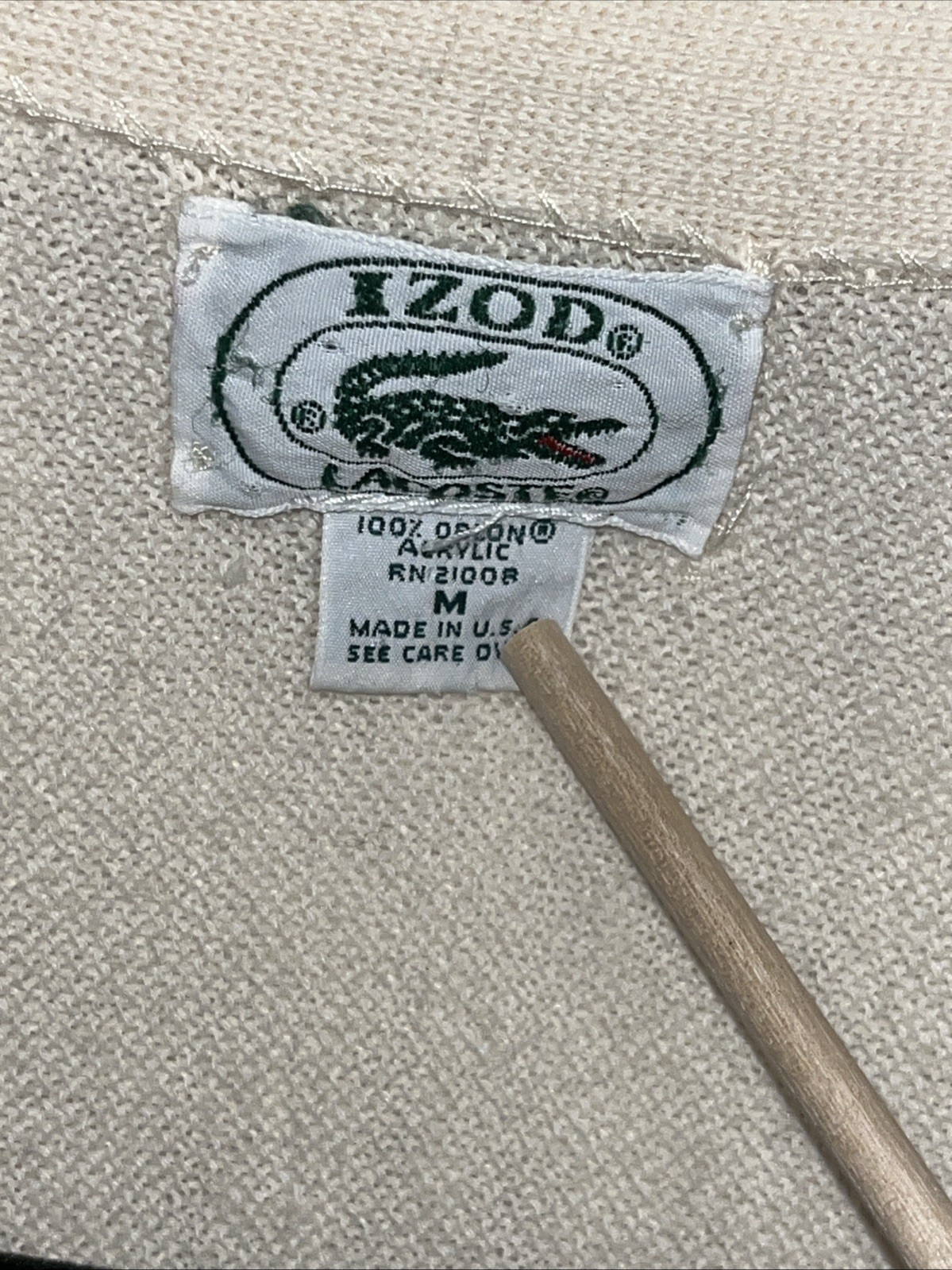 Vintage Lacoste Izod Men's M Ivory Cardigan Acrylic Long Sleeve Button Down READ
