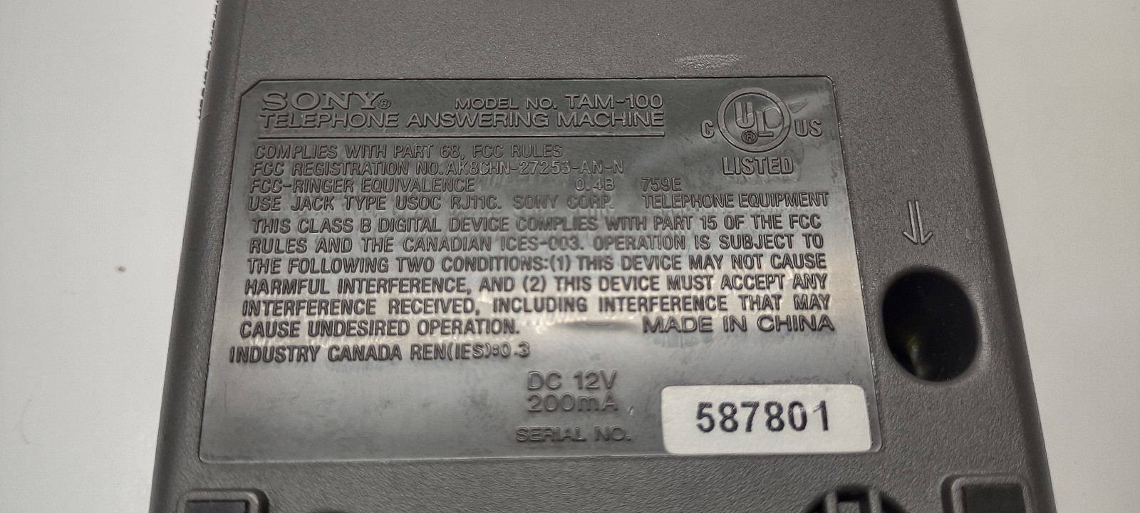 как выглядит Sony TAM-100 Telephone Answering Machine Tested Working фото