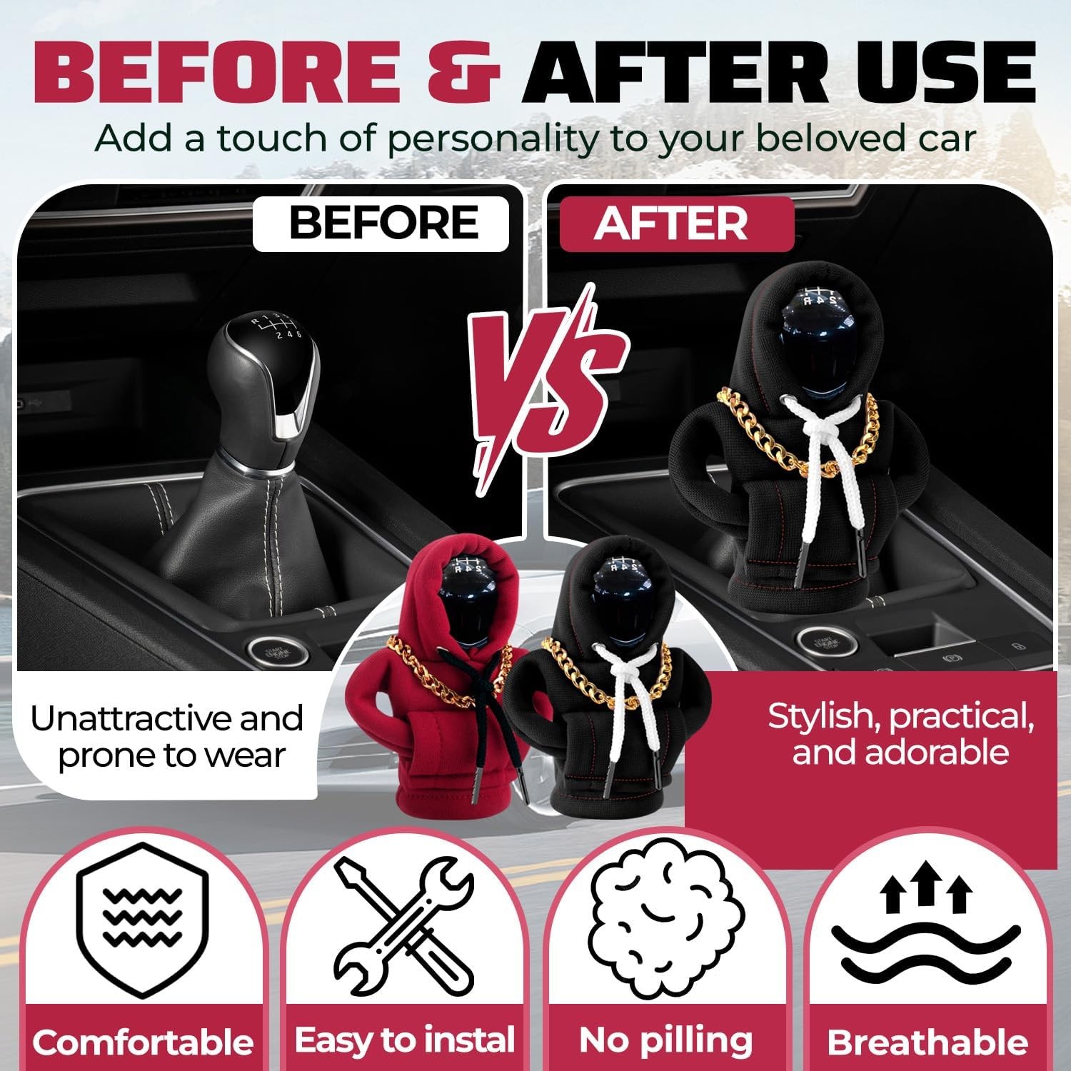 Gear Shift Hoodie Car Knob Cover Funny Universal Fit Automotive Decor Gift