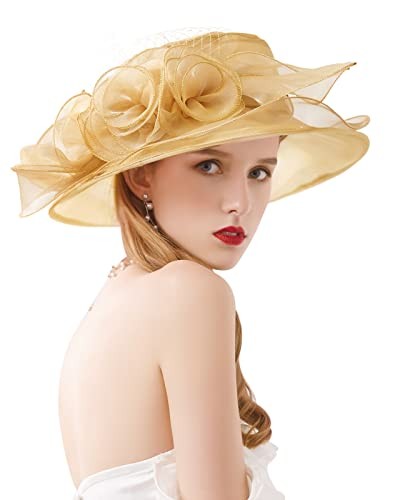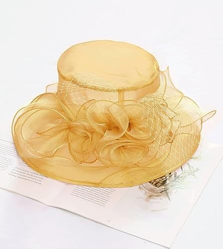 Z X Organza Church Wedding Tea Party Derby Hats for Women 024 Gold Fascinator