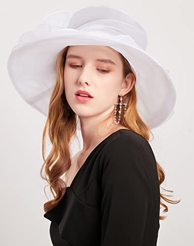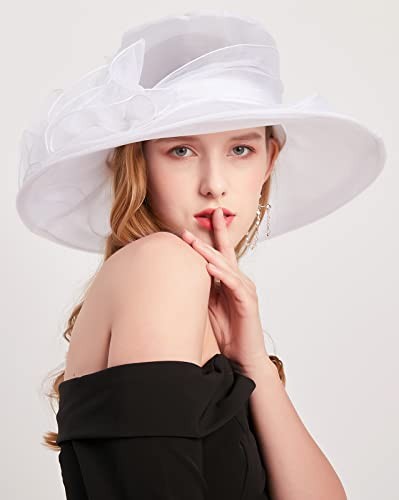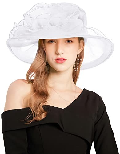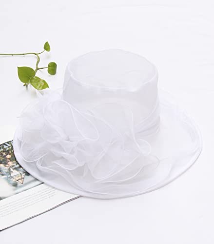 Z X Organza Church Wedding Tea Party Derby Hats for Women 034 White Fascinator
