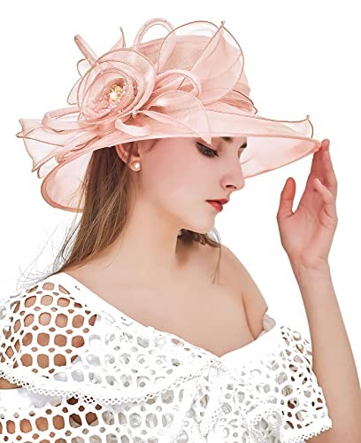 Z X Organza Church Wedding Tea Party Derby Hats for 022 Peach Pink Fascinator