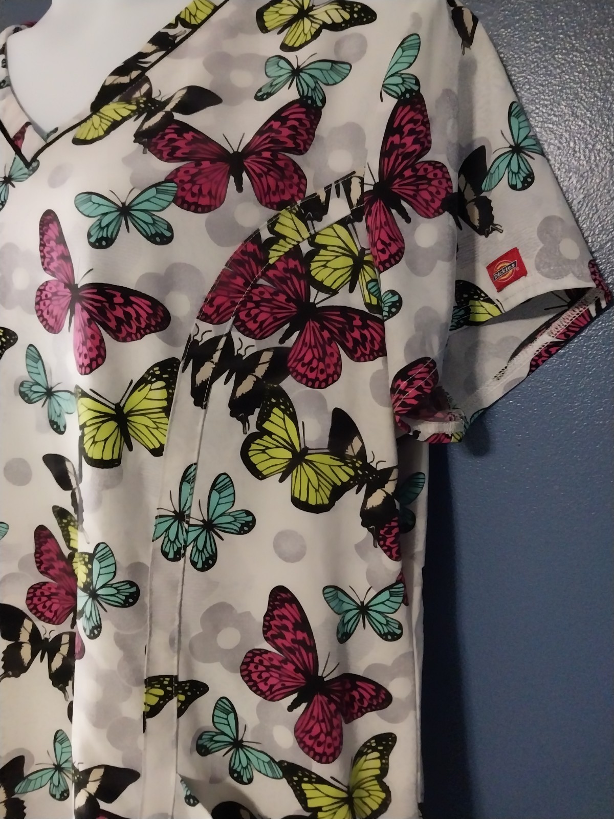 Dickies Plus Size 2X Scrub Top Silky Stretch Short Sleeves Feminine Cut Key Ring