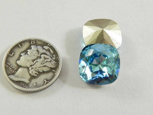 как выглядит Aquamarine F 12mm Swarovski 4470 Cushion Cut Stone фото