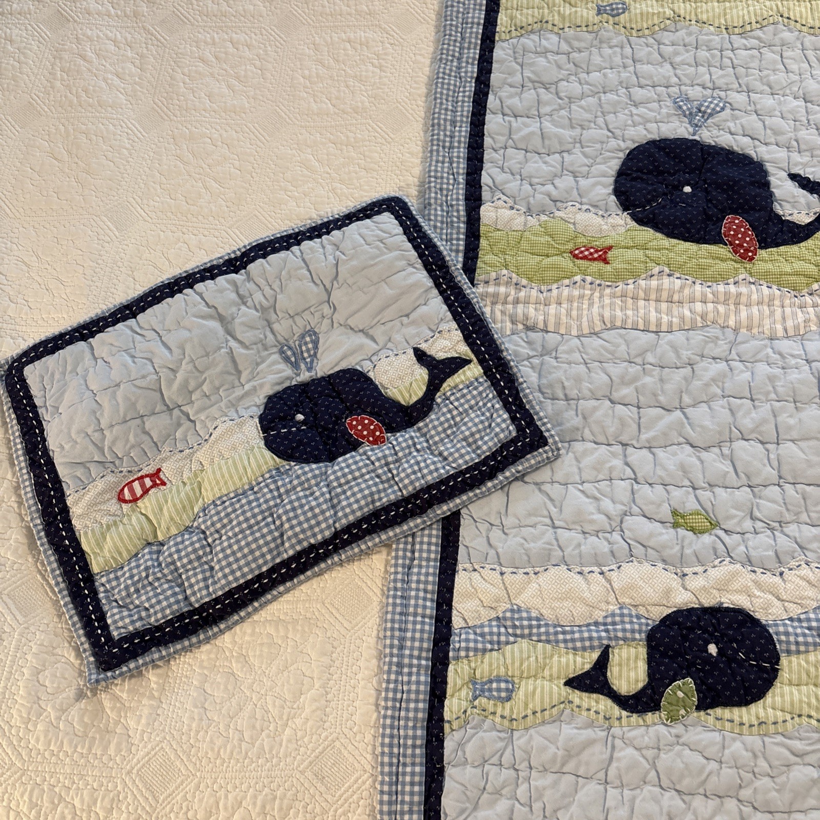 Pottery Barn Kid Whales Fish Seas Quilted Baby Crib Quilt Bed Youth Boy Blue